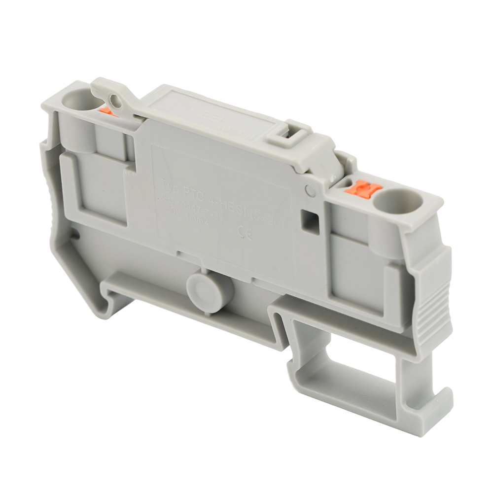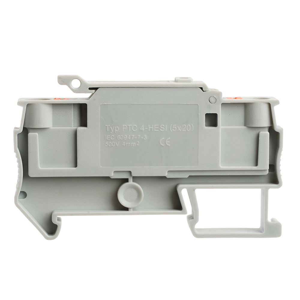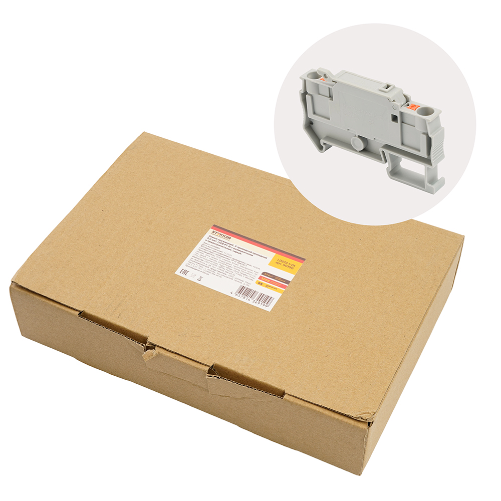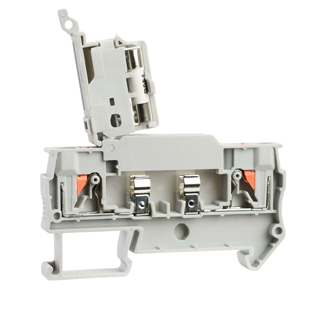 Зажим самозажимной STEKKER, 2-проводной проходной 4,0 мм² (JXB PT 4) c размыкателем и предохранителем, LD572-1-01, серый 50190