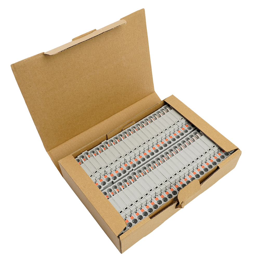LD572-1-01 ЗНИ Зажим самозажимн.,2-проводн.проходн. 4,0 мм² (JXB PT 4) c размыкат.и предохран.,серый