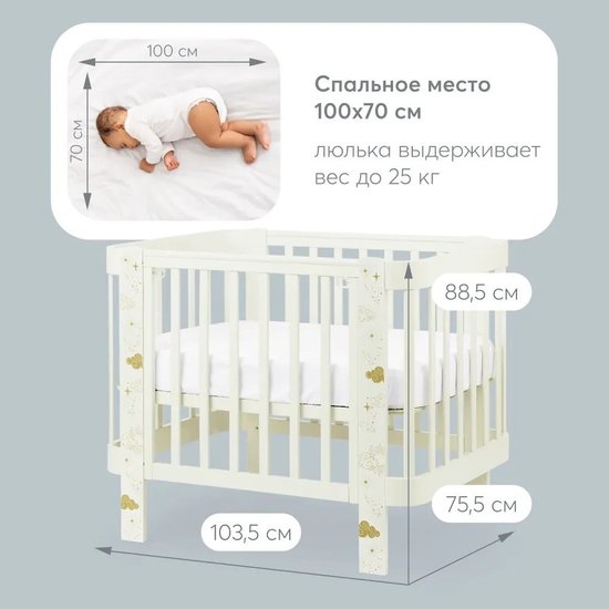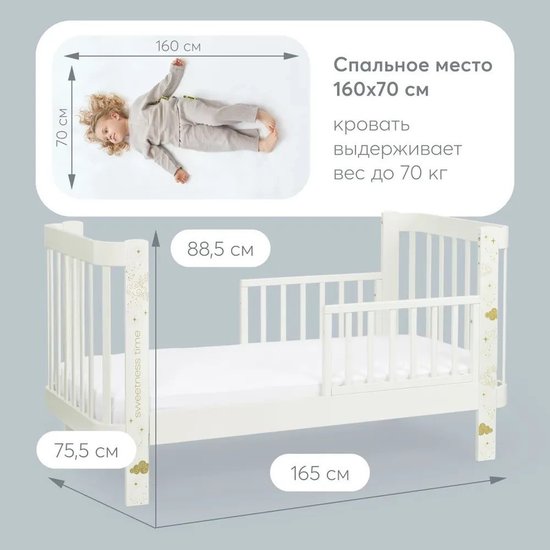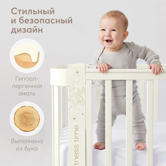 ✅Ключевые характеристикиДетская кровать-трансформер предназначена для детей от рождения до 10 лет. Изготовлена из натуральной древесины бука с реечными стенками и дном для вентиляции. Имеет три уровня высоты спального места и возможность наклона на 6°. Максимальная нагрузка составляет 25 кг.✅Преимущества и отличияКровать оснащена продольным маятниковым механизмом с мягким мятником для люльки; опускающейся и снимающейся боковиной; а также комплектом расширения; который легко устанавливается и превращает люльку в полноразмерную кровать. Бортики имеют специальные накладки для защиты при прорезывании зубов.✅ПрактичностьТри уровня высоты дна и регулируемое положение опускающейся стенки обеспечивают удобство использования и адаптацию к росту ребенка. Кровать оснащена четырьмя колесами с тормозами для мобильности и безопасной фиксации. Рекомендуется регулярный уход с использованием сухой ткани и контроль крепежных элементов.✅УникальностьМодель сочетает в себе функции люльки; кровати и маятника; что делает её универсальным решением для растущих детей. Использование натурального бука и минималистичный дизайн обеспечивают долговечность и стиль; а комплект расширения позволяет продлить срок службы изделия до 7 лет.✅Ключевые характеристикиДетская кровать-трансформер предназначена для детей от рождения до 10 лет. Изготовлена из натуральной древесины бука с реечными стенками и дном для вентиляции. Имеет три уровня высоты спального места и возможность наклона на 6°. Максимальная нагрузка составляет 25 кг.✅Преимущества и отличияКровать оснащена продольным маятниковым механизмом с мягким мятником для люльки; опускающейся и снимающейся боковиной; а также комплектом расширения; который легко устанавливается и превращает люльку в полноразмерную кровать. Бортики имеют специальные накладки для защиты при прорезывании зубов.✅ПрактичностьТри уровня высоты дна и регулируемое положение опускающейся стенки обеспечивают удобство использования и адаптацию к росту ребенка. Кровать оснащена четырьмя колесами с тормозами для мобильности и безопасной фиксации. Рекомендуется регулярный уход с использованием сухой ткани и контроль крепежных элементов.✅УникальностьМодель сочетает в себе функции люльки; кровати и маятника; что делает её универсальным решением для растущих детей. Использование натурального бука и минималистичный дизайн обеспечивают долговечность и стиль; а комплект расширения позволяет продлить срок службы изделия до 7 лет.
