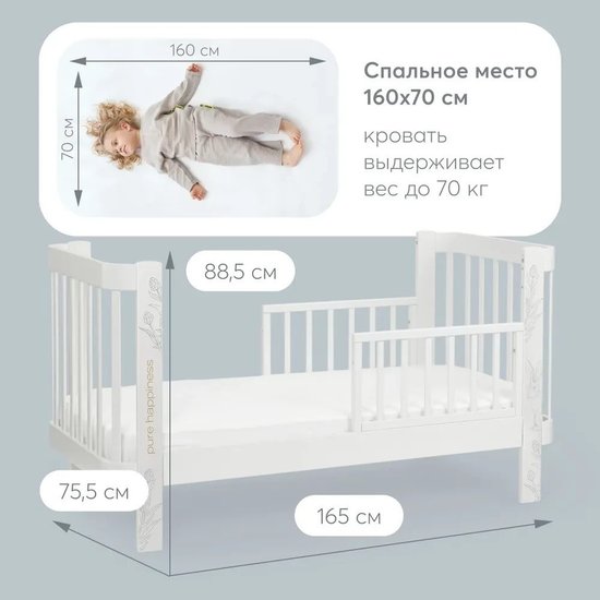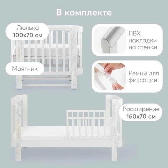 ✅Ключевые характеристикиДетская кровать-трансформер предназначена для детей от рождения до 10 лет. Изготовлена из натуральной древесины твёрдой породы бук; имеет три уровня высоты спального места и продольный маятниковый механизм. Внутренние размеры спального места составляют 100 на 70 см; максимальная нагрузка - 25 кг.✅Преимущества и отличияКровать оснащена съёмной опускающейся боковиной и ремнями для прикроватного использования; что обеспечивает удобство и безопасность. Реечные стенки и дно с отверстиями обеспечивают хорошую вентиляцию. В комплект входит расширение; позволяющее трансформировать люльку в полноразмерную кровать длиной 160 см.✅ПрактичностьПроцесс установки и разборки расширения интуитивно понятен и не требует специальных навыков. Кровать оснащена четырьмя колесами с тормозными механизмами для удобства перемещения. Рекомендуется регулярный уход с использованием сухой мягкой ткани и контроль крепёжных элементов для сохранения долговечности.✅УникальностьОсобенностью модели является возможность наклона спального места под углом 6°; а также бортики со специальными накладками для защиты при прорезывании зубов. Классический минималистичный дизайн и использование высококачественных материалов делают кровать стильным и надёжным решением для растущей семьи.✅Ключевые характеристикиДетская кровать-трансформер предназначена для детей от рождения до 10 лет. Изготовлена из натуральной древесины твёрдой породы бук; имеет три уровня высоты спального места и продольный маятниковый механизм. Внутренние размеры спального места составляют 100 на 70 см; максимальная нагрузка - 25 кг.✅Преимущества и отличияКровать оснащена съёмной опускающейся боковиной и ремнями для прикроватного использования; что обеспечивает удобство и безопасность. Реечные стенки и дно с отверстиями обеспечивают хорошую вентиляцию. В комплект входит расширение; позволяющее трансформировать люльку в полноразмерную кровать длиной 160 см.✅ПрактичностьПроцесс установки и разборки расширения интуитивно понятен и не требует специальных навыков. Кровать оснащена четырьмя колесами с тормозными механизмами для удобства перемещения. Рекомендуется регулярный уход с использованием сухой мягкой ткани и контроль крепёжных элементов для сохранения долговечности.✅УникальностьОсобенностью модели является возможность наклона спального места под углом 6°; а также бортики со специальными накладками для защиты при прорезывании зубов. Классический минималистичный дизайн и использование высококачественных материалов делают кровать стильным и надёжным решением для растущей семьи.