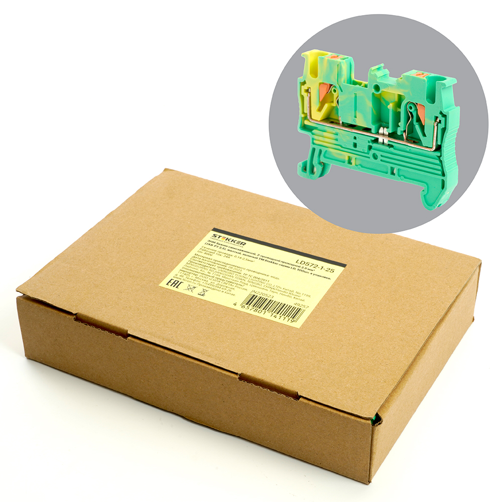 LD572-1-25 ЗНИ Зажим самозажимной, 2-проводной проходной 2,5 мм² (JXB PT 2,5), желтый, зеленый