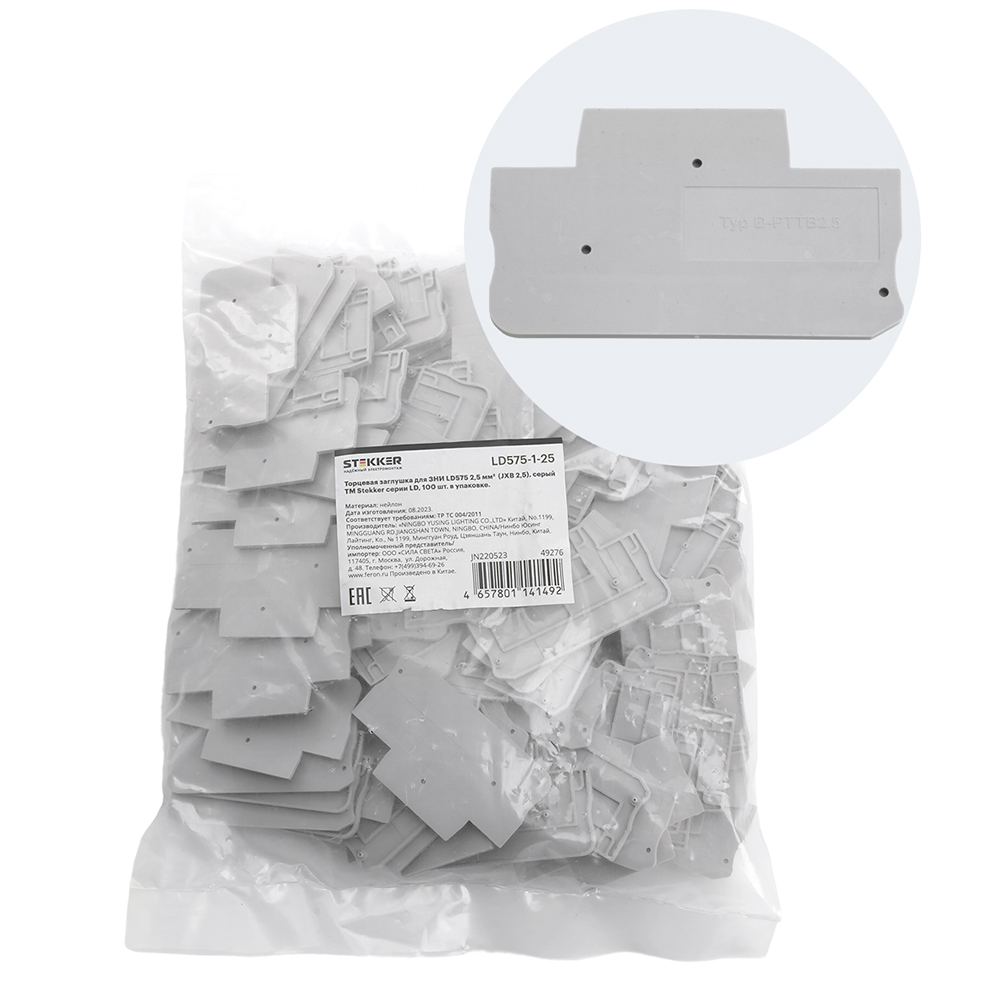 LD575-1-25 Торцевая заглушка для ЗНИ LD575 2,5 мм² (JXB PT 2,5), серый