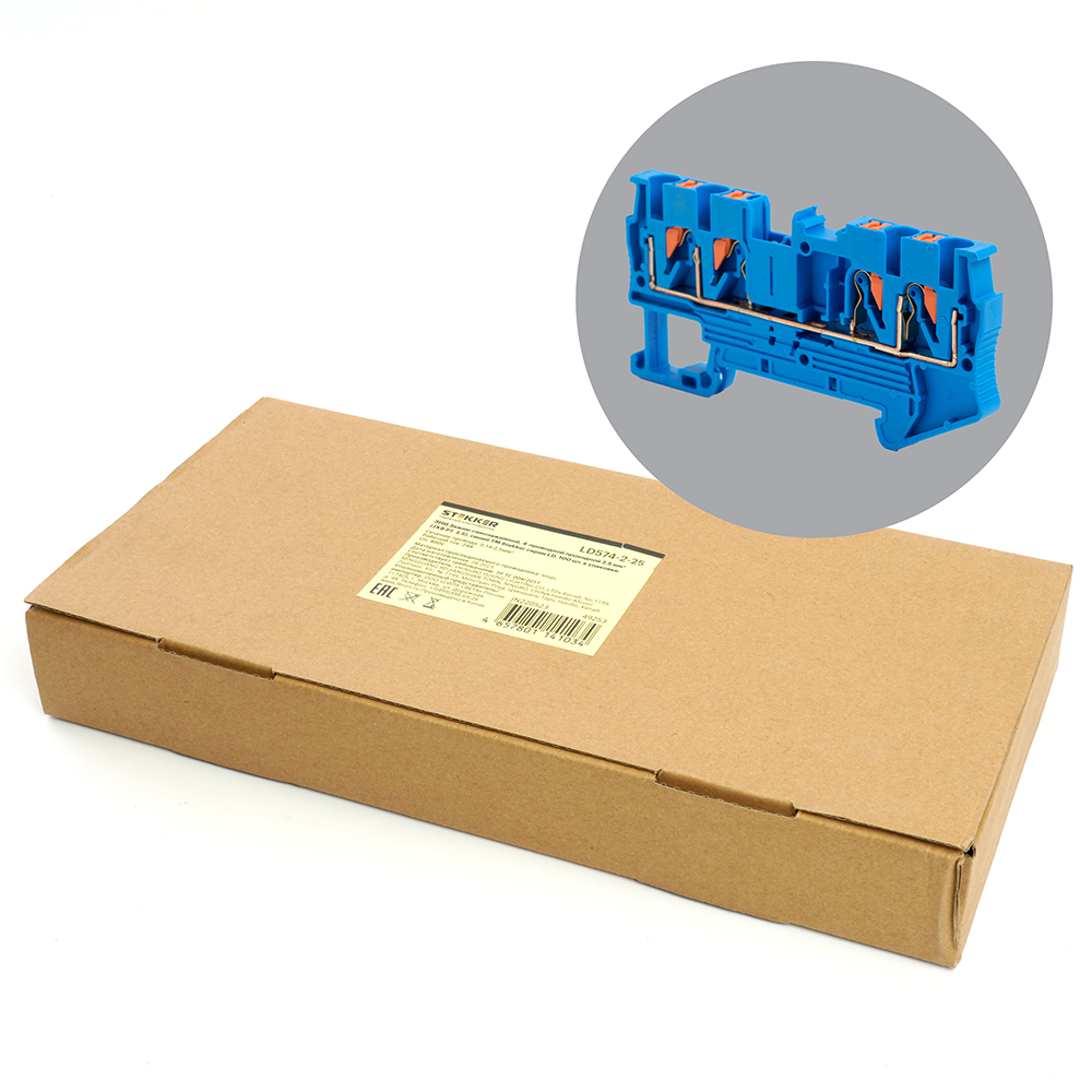 LD574-2-25 ЗНИ Зажим самозажимной, 4-проводной проходной 2,5 мм² (JXB PT 2,5), синий