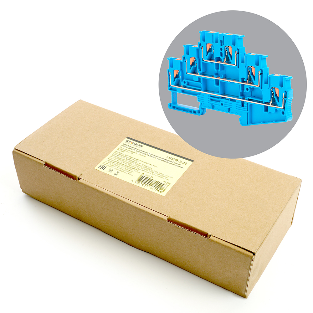 LD579-2-25 ЗНИ Зажим самозажимной, 6-проводной проходной 3 уровня 2,5 мм² (JXB PT 2,5), синий