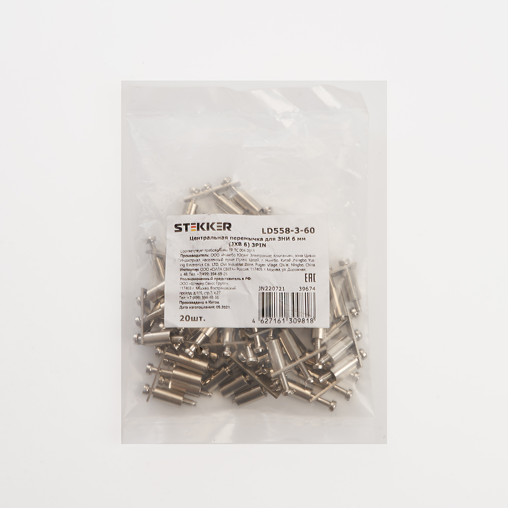 Центральная перемычка для ЗНИ 6 мм (JXB 6) 3PIN LD558-3-60, STEKKER 39674