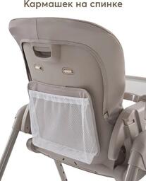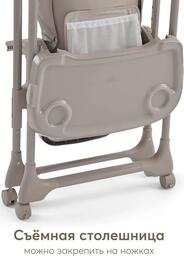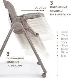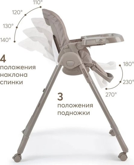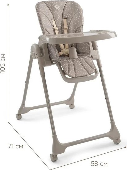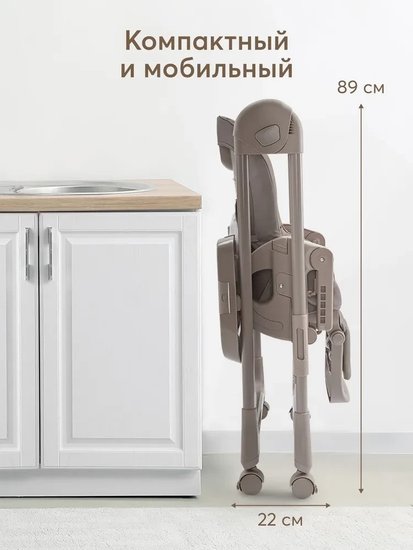 ✅Ключевые характеристикиВысокий стульчик для кормления предназначен для детей от 6 до 48 месяцев с максимальной нагрузкой до 20 кг. Имеет 8 уровней регулировки по высоте и 4 положения наклона спинки; включая лежачее положение. Размеры в разложенном виде составляют 71x58x105 см; а в сложенном - 22x58x89 см. Вес без упаковки 7.7 кг.✅Преимущества и отличияСтульчик оснащён съёмной столешницей с 3 положениями по глубине и подносом с подстаканником; который можно мыть в посудомоечной машине. Все 4 колеса поворотные и имеют тормоза; что обеспечивает мобильность и безопасность. Пятиточечные ремни безопасности надёжно фиксируют ребёнка.✅ПрактичностьСъёмная мягкая текстильная вкладка-матрасик обеспечивает комфорт ребёнка и легко снимается для стирки. Столешница может быть закреплена на задних ножках для удобства хранения. Подставка под планшет или книгу расширяет функциональность стульчика; позволяя использовать его не только для кормления; но и для занятий и развлечений.✅УникальностьМодель отличается компактностью и лёгкостью складывания; что удобно для хранения и транспортировки. Регулировка подножки в 3 положениях и возможность раскладывания спинки в горизонтальное положение делают стульчик универсальным для разных этапов развития ребёнка. Использование качественных материалов - пластика; металла и полиэстера - обеспечивает долговечность и простоту ухода.✅Ключевые характеристикиВысокий стульчик для кормления предназначен для детей от 6 до 48 месяцев с максимальной нагрузкой до 20 кг. Имеет 8 уровней регулировки по высоте и 4 положения наклона спинки; включая лежачее положение. Размеры в разложенном виде составляют 71x58x105 см; а в сложенном - 22x58x89 см. Вес без упаковки 7.7 кг.✅Преимущества и отличияСтульчик оснащён съёмной столешницей с 3 положениями по глубине и подносом с подстаканником; который можно мыть в посудомоечной машине. Все 4 колеса поворотные и имеют тормоза; что обеспечивает мобильность и безопасность. Пятиточечные ремни безопасности надёжно фиксируют ребёнка.✅ПрактичностьСъёмная мягкая текстильная вкладка-матрасик обеспечивает комфорт ребёнка и легко снимается для стирки. Столешница может быть закреплена на задних ножках для удобства хранения. Подставка под планшет или книгу расширяет функциональность стульчика; позволяя использовать его не только для кормления; но и для занятий и развлечений.✅УникальностьМодель отличается компактностью и лёгкостью складывания; что удобно для хранения и транспортировки. Регулировка подножки в 3 положениях и возможность раскладывания спинки в горизонтальное положение делают стульчик универсальным для разных этапов развития ребёнка. Использование качественных материалов - пластика; металла и полиэстера - обеспечивает долговечность и простоту ухода.
