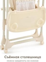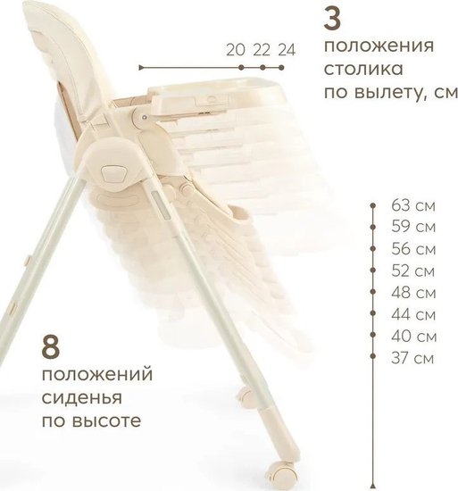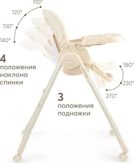 ✅Ключевые характеристикиВысокий стульчик для кормления предназначен для детей от 6 до 48 месяцев с максимальной нагрузкой до 20 кг. Оснащён 8 положениями по высоте и регулируемой спинкой с 4 углами наклона; включая лежачее положение. Размеры в разложенном виде составляют 71х58х105 см; а в сложенном - 22х58х89 см; что обеспечивает компактность и удобство хранения.✅Преимущества и отличияМодель оснащена 5-точечными ремнями безопасности и мягкой съёмной вкладкой-матрасиком для комфорта ребёнка. Столешница регулируется по глубине в 3 положениях и имеет съёмный поднос с подстаканником; который можно мыть в посудомоечной машине. Все 4 колеса поворотные и снабжены тормозами; что обеспечивает мобильность и безопасность.✅ПрактичностьСтульчик легко складывается и компактен при хранении. Складная подставка под планшет или книгу расширяет функциональность; позволяя использовать стульчик не только для кормления; но и для занятий и развлечений. Уход за изделием прост - тканевую обивку и пластиковые детали можно чистить влажной тряпкой с мягким моющим средством.✅УникальностьОсобенностью является возможность регулировки подножки в 3 положениях и наличие съёмной столешницы; которую можно закрепить на задних ножках стула. Использование качественных материалов - пластика; металла и 100% полиэстера в чехле - обеспечивает долговечность и надёжность конструкции.✅Ключевые характеристикиВысокий стульчик для кормления предназначен для детей от 6 до 48 месяцев с максимальной нагрузкой до 20 кг. Оснащён 8 положениями по высоте и регулируемой спинкой с 4 углами наклона; включая лежачее положение. Размеры в разложенном виде составляют 71х58х105 см; а в сложенном - 22х58х89 см; что обеспечивает компактность и удобство хранения.✅Преимущества и отличияМодель оснащена 5-точечными ремнями безопасности и мягкой съёмной вкладкой-матрасиком для комфорта ребёнка. Столешница регулируется по глубине в 3 положениях и имеет съёмный поднос с подстаканником; который можно мыть в посудомоечной машине. Все 4 колеса поворотные и снабжены тормозами; что обеспечивает мобильность и безопасность.✅ПрактичностьСтульчик легко складывается и компактен при хранении. Складная подставка под планшет или книгу расширяет функциональность; позволяя использовать стульчик не только для кормления; но и для занятий и развлечений. Уход за изделием прост - тканевую обивку и пластиковые детали можно чистить влажной тряпкой с мягким моющим средством.✅УникальностьОсобенностью является возможность регулировки подножки в 3 положениях и наличие съёмной столешницы; которую можно закрепить на задних ножках стула. Использование качественных материалов - пластика; металла и 100% полиэстера в чехле - обеспечивает долговечность и надёжность конструкции.