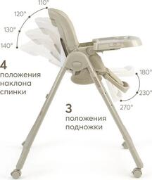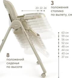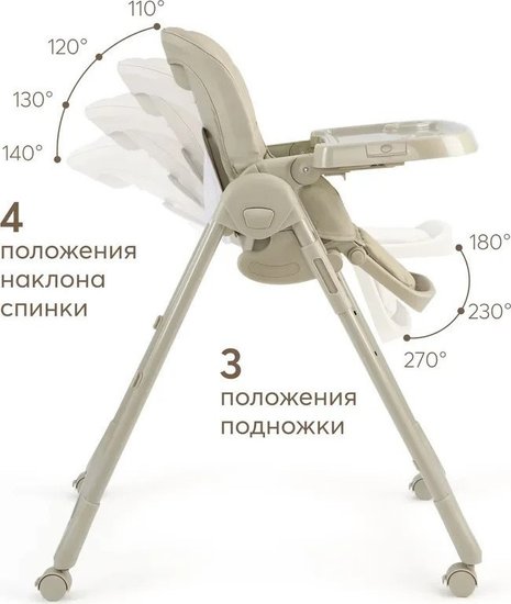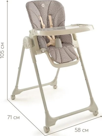 ✅Ключевые характеристикиВысокий стульчик для кормления предназначен для детей от 6 до 48 месяцев с максимальной нагрузкой до 20 кг. Имеет 8 уровней регулировки по высоте и 4 положения наклона спинки; включая лежачее положение. Размеры в разложенном виде составляют 71x58x105 см; а в сложенном - 22x58x89 см; что обеспечивает компактность и удобство хранения.✅Преимущества и отличияСтульчик оснащён 5-точечными ремнями безопасности и регулируемой по глубине съёмной столешницей с подстаканником; которую можно мыть в посудомоечной машине. Все четыре колеса поворотные и снабжены тормозами; что обеспечивает мобильность и безопасность при использовании. Подножка регулируется в трёх положениях для максимального комфорта ребёнка.✅ПрактичностьСъёмная мягкая вкладка-матрасик из полиэстера обеспечивает комфорт и лёгкость ухода. Столешница может быть закреплена на задних ножках стула; что удобно при хранении. Для чистки рекомендуется использовать мягкие моющие средства без абразивов; а металлические части следует своевременно сушить для предотвращения ржавчины.✅УникальностьМодель оснащена складной подставкой для планшета или книги; что расширяет функциональность стульчика не только для кормления; но и для занятий и развлечений. Компактность; мобильность и возможность регулировки в широком диапазоне делают этот стульчик универсальным решением для современных родителей.✅Ключевые характеристикиВысокий стульчик для кормления предназначен для детей от 6 до 48 месяцев с максимальной нагрузкой до 20 кг. Имеет 8 уровней регулировки по высоте и 4 положения наклона спинки; включая лежачее положение. Размеры в разложенном виде составляют 71x58x105 см; а в сложенном - 22x58x89 см; что обеспечивает компактность и удобство хранения.✅Преимущества и отличияСтульчик оснащён 5-точечными ремнями безопасности и регулируемой по глубине съёмной столешницей с подстаканником; которую можно мыть в посудомоечной машине. Все четыре колеса поворотные и снабжены тормозами; что обеспечивает мобильность и безопасность при использовании. Подножка регулируется в трёх положениях для максимального комфорта ребёнка.✅ПрактичностьСъёмная мягкая вкладка-матрасик из полиэстера обеспечивает комфорт и лёгкость ухода. Столешница может быть закреплена на задних ножках стула; что удобно при хранении. Для чистки рекомендуется использовать мягкие моющие средства без абразивов; а металлические части следует своевременно сушить для предотвращения ржавчины.✅УникальностьМодель оснащена складной подставкой для планшета или книги; что расширяет функциональность стульчика не только для кормления; но и для занятий и развлечений. Компактность; мобильность и возможность регулировки в широком диапазоне делают этот стульчик универсальным решением для современных родителей.