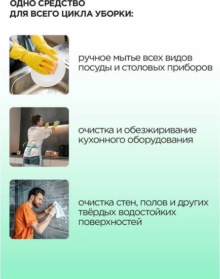 ✅Ключевые характеристикиУниверсальное жидкое чистящее средство предназначено для ручного мытья посуды, столовых приборов, а также для очистки и обезжиривания кухонного оборудования, стен, полов и других твердых водостойких поверхностей. Объем 5 литров обеспечивает длительное использование и удобство в бытовых и профессиональных условиях.✅Преимущества и отличияСредство эффективно удаляет загрязнения и жир благодаря высокому содержанию активных поверхностно-активных веществ (АПАВ) в составе. Универсальность применения позволяет использовать его не только для посуды, но и для различных поверхностей, что экономит место и средства на покупку специализированных продуктов.✅ПрактичностьЖидкая форма выпуска обеспечивает удобное дозирование и равномерное распределение средства при мытье. Состав с очищенной водой и безопасными добавками минимизирует риск повреждения обрабатываемых поверхностей и облегчает смывание.✅УникальностьВ составе присутствуют загуститель, отдушка и консервант в малых концентрациях, что обеспечивает приятный аромат и длительный срок хранения без потери эффективности. Средство подходит для широкого спектра задач, сочетая в себе функции моющего и обезжиривающего средства.✅Ключевые характеристикиУниверсальное жидкое чистящее средство предназначено для ручного мытья посуды, столовых приборов, а также для очистки и обезжиривания кухонного оборудования, стен, полов и других твердых водостойких поверхностей. Объем 5 литров обеспечивает длительное использование и удобство в бытовых и профессиональных условиях.✅Преимущества и отличияСредство эффективно удаляет загрязнения и жир благодаря высокому содержанию активных поверхностно-активных веществ (АПАВ) в составе. Универсальность применения позволяет использовать его не только для посуды, но и для различных поверхностей, что экономит место и средства на покупку специализированных продуктов.✅ПрактичностьЖидкая форма выпуска обеспечивает удобное дозирование и равномерное распределение средства при мытье. Состав с очищенной водой и безопасными добавками минимизирует риск повреждения обрабатываемых поверхностей и облегчает смывание.✅УникальностьВ составе присутствуют загуститель, отдушка и консервант в малых концентрациях, что обеспечивает приятный аромат и длительный срок хранения без потери эффективности. Средство подходит для широкого спектра задач, сочетая в себе функции моющего и обезжиривающего средства.