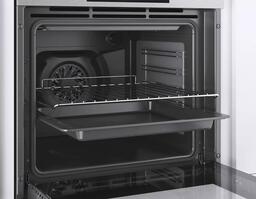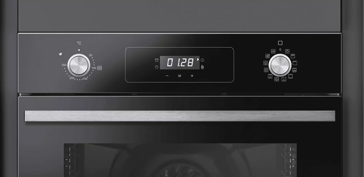 Особенности дизайна и внешней панели управления — также важный пункт при выборе духовки на кухню. В данной модели нужно обратить внимание на цвет — черный/нержавеющая сталь,