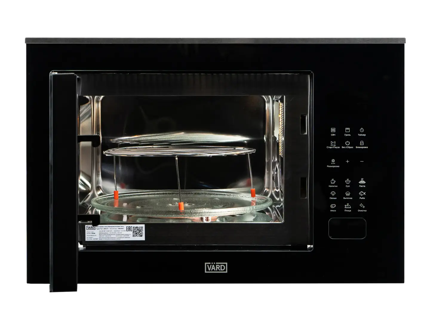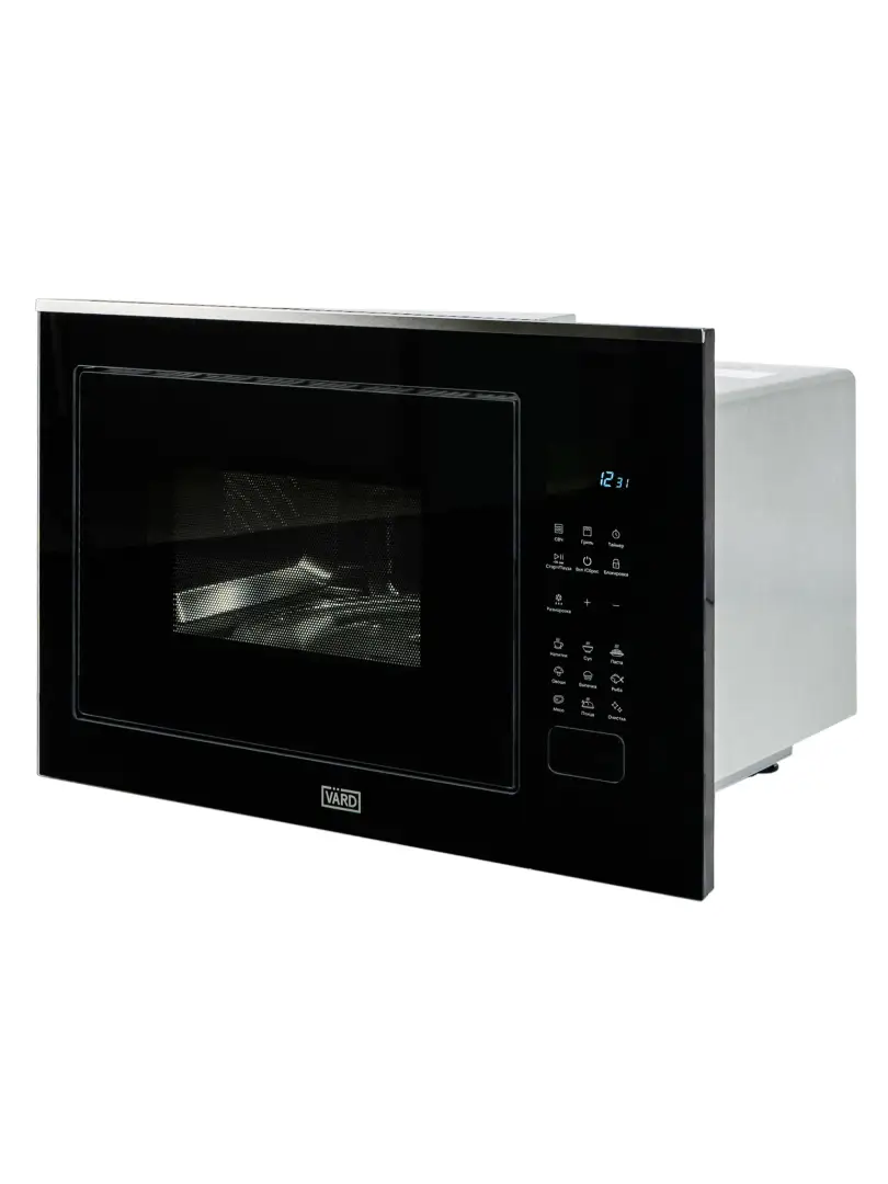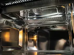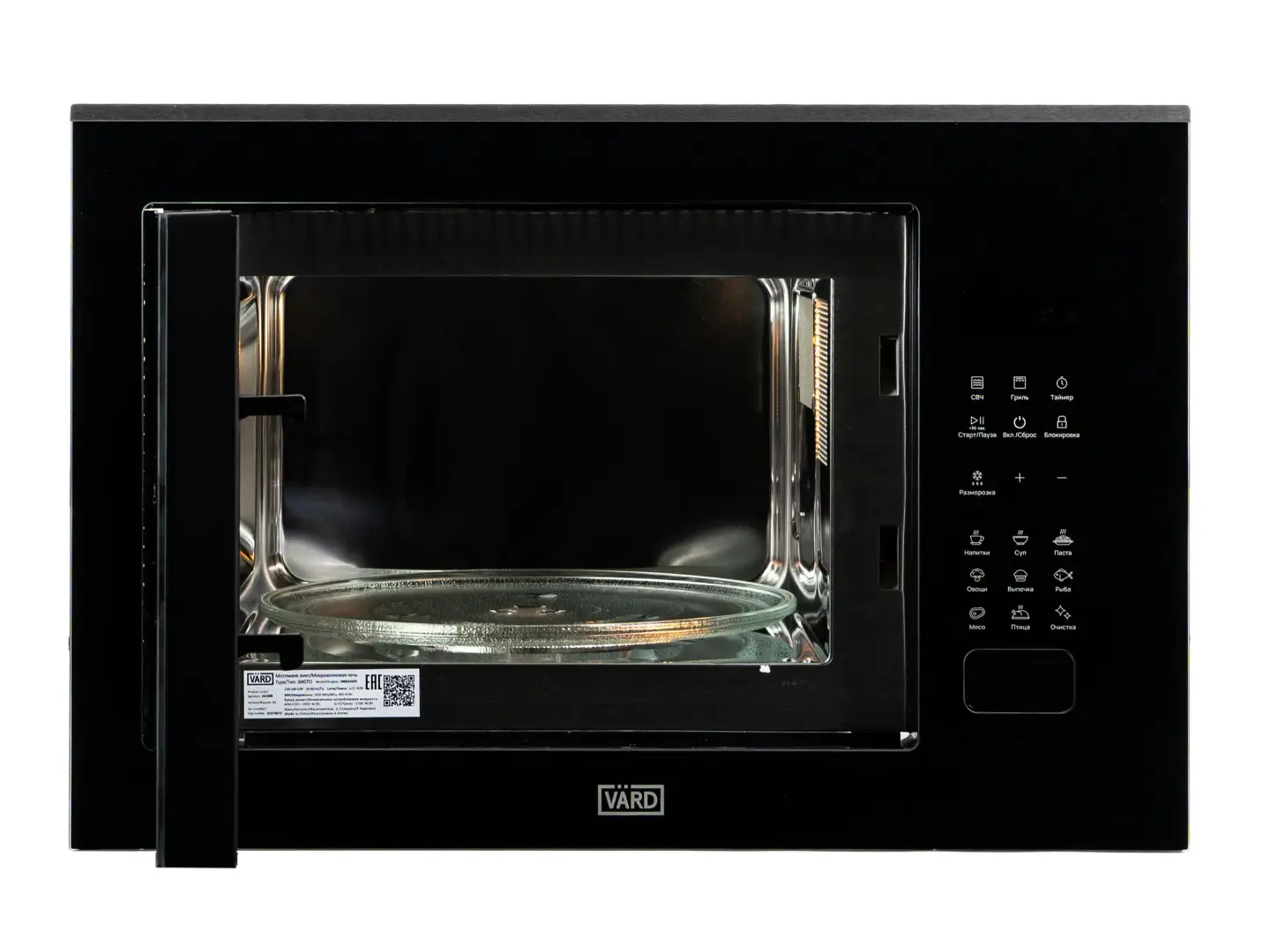 Встраиваемая микроволновая печь с элегантной вставкой из нержавеющей стали сочетает в себе функциональность и лаконичный дизайн без выступающих элементов, что позволяет установить ее в любую современную кухню.