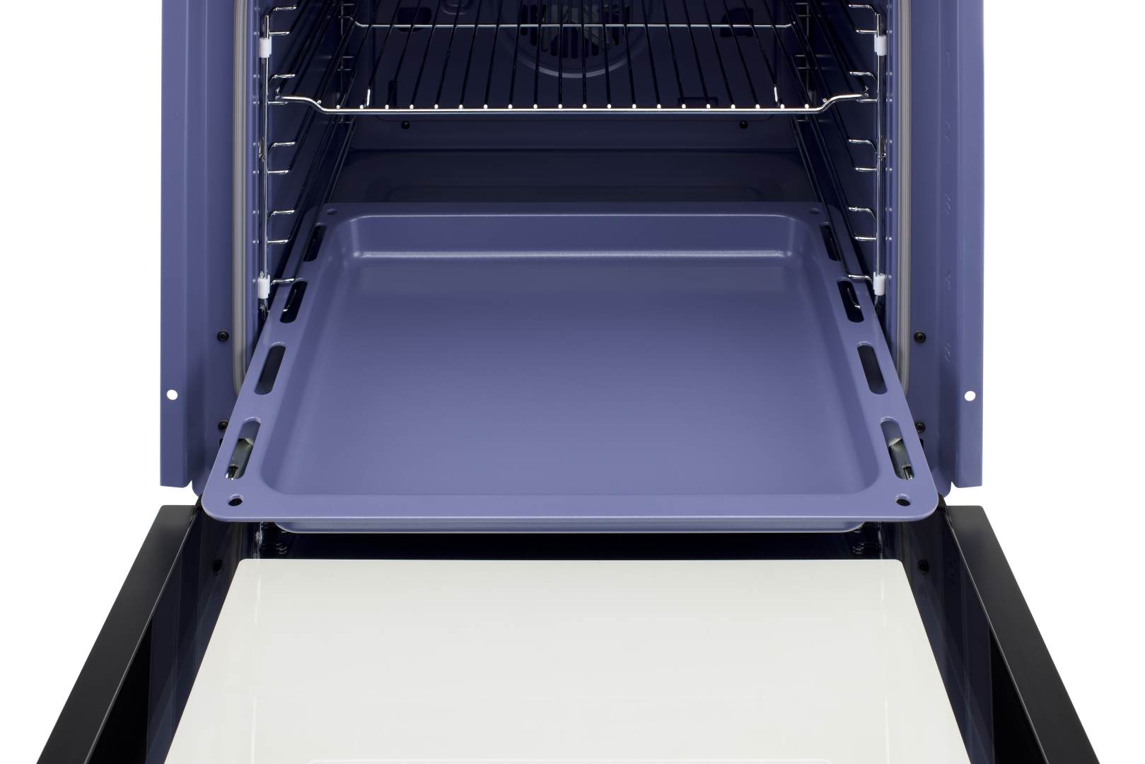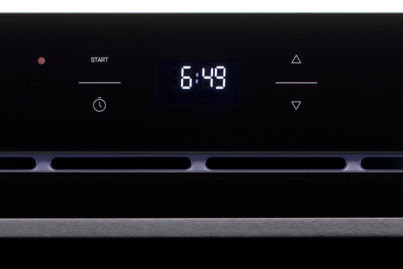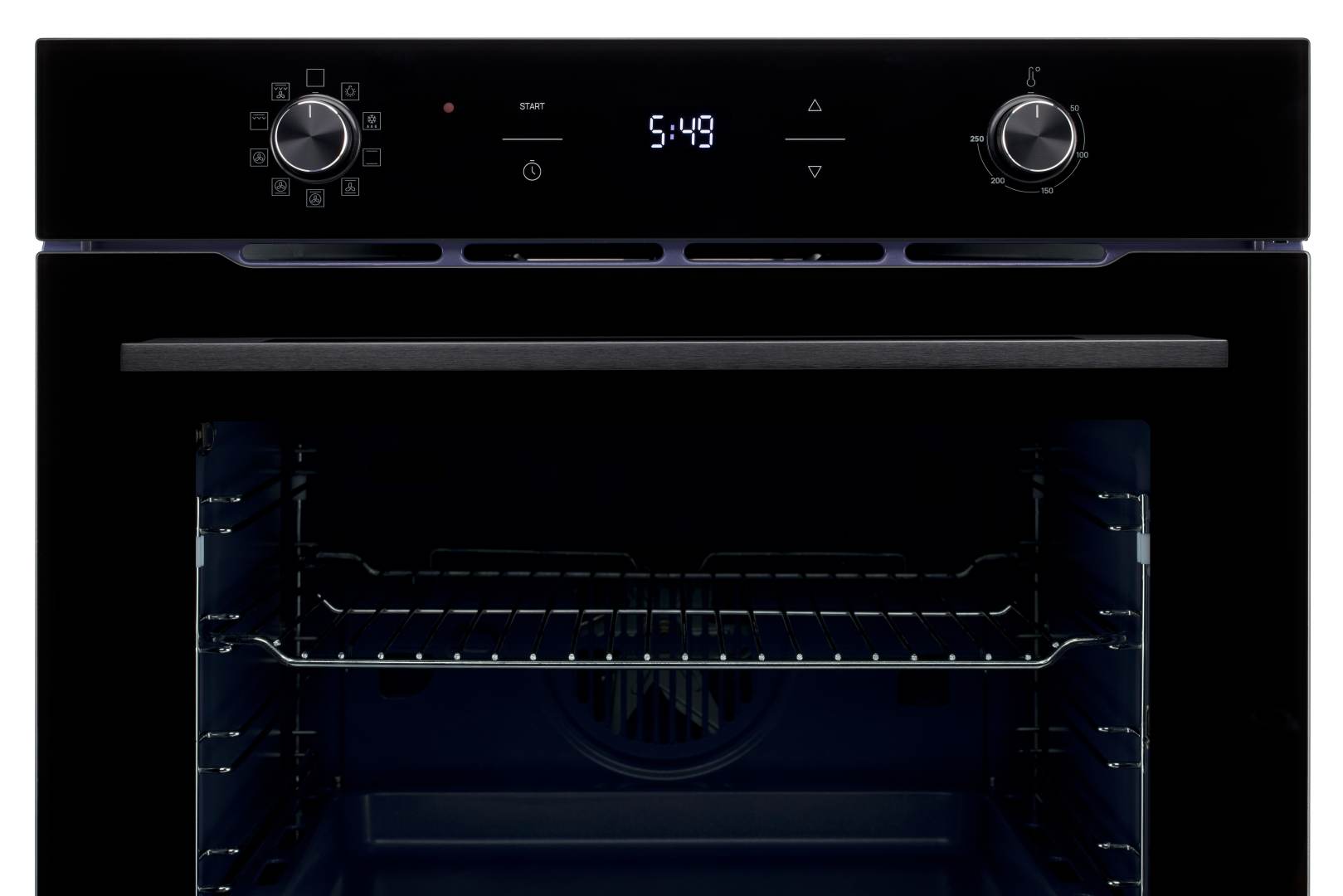 Электрический духовой шкаф черного цвета с утапливаемыми переключателями и внутренним объемом 75 литров станет гармоничным дополнением к дизайну вашей кухни.