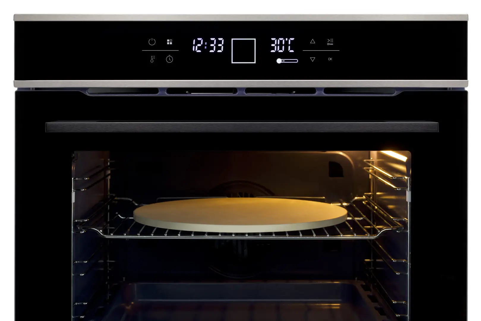 Встраиваемый электрический духовой шкаф с сенсорным управлением и камнем для пиццы сделает любимое блюдо еще вкуснее.