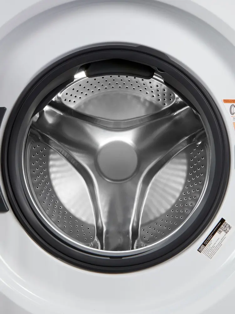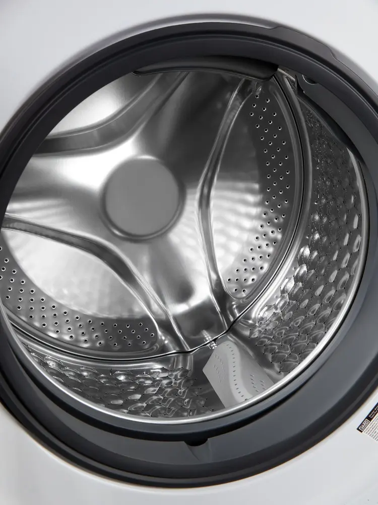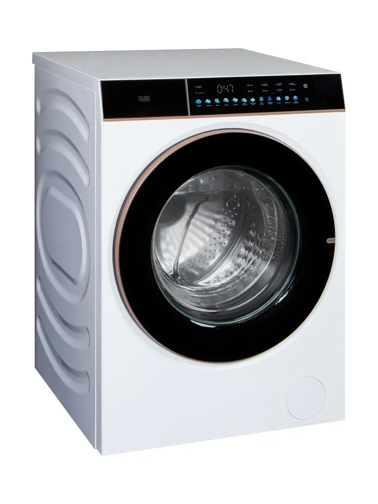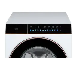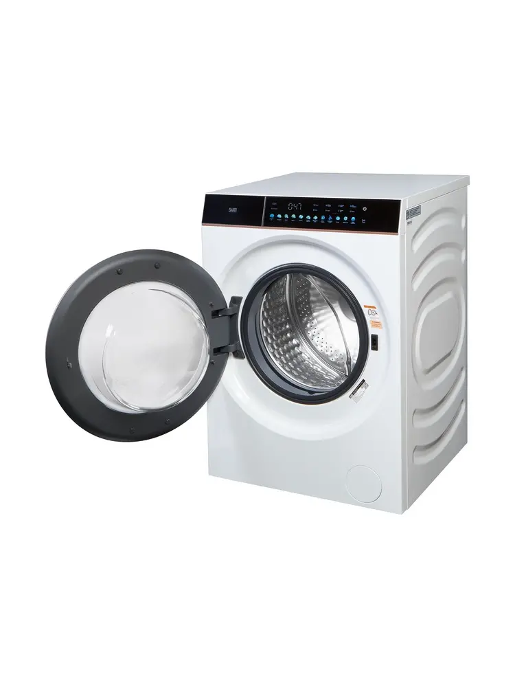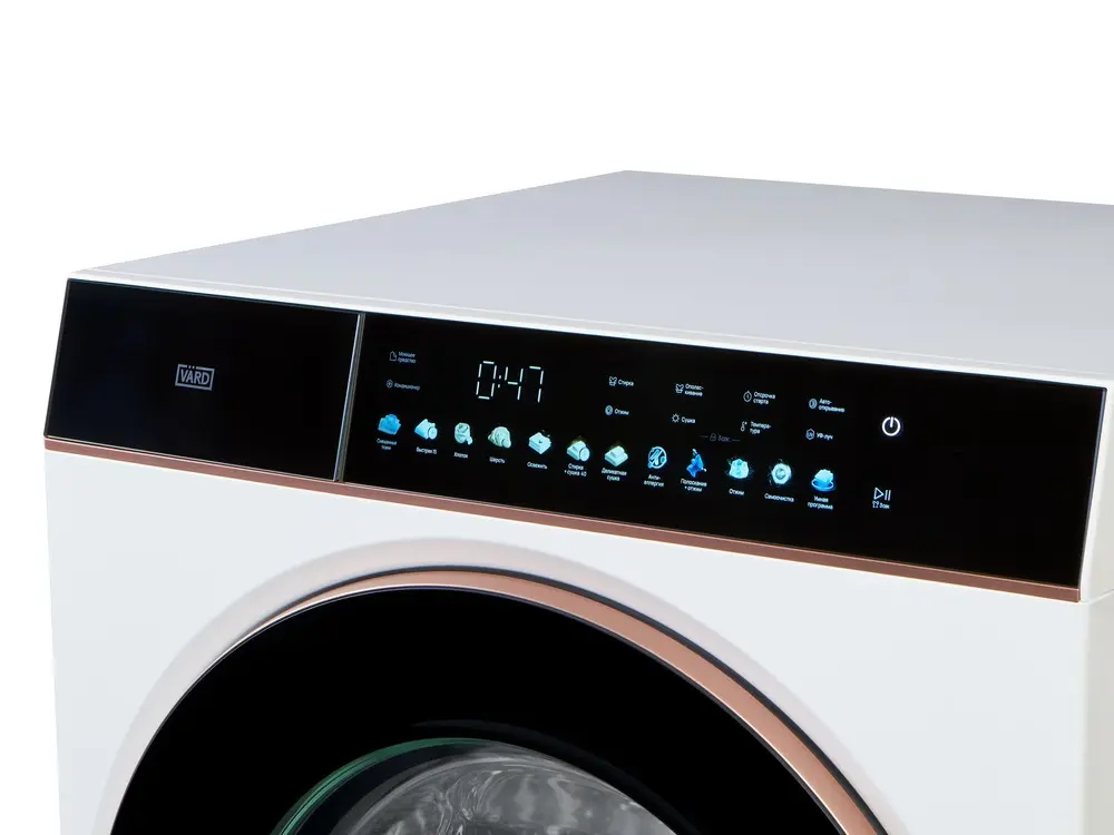 Стирально-сушильная машина белого цвета со вставками цвета розового золота сочетает в себе премиальный дизайн и передовые технологии.