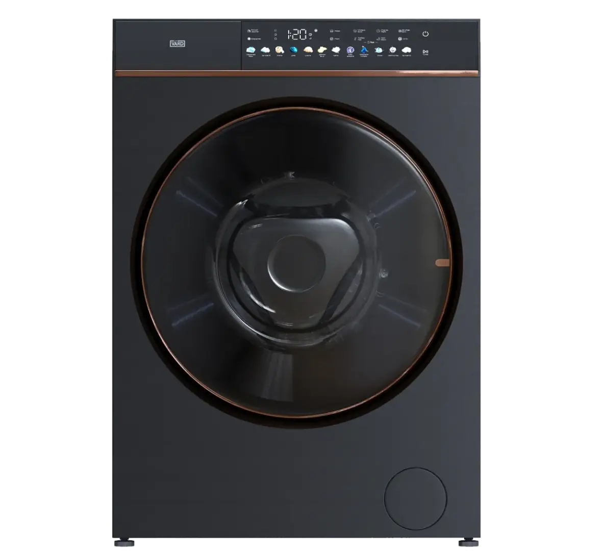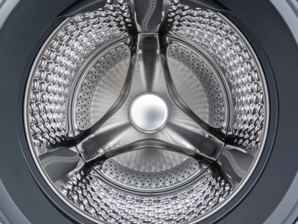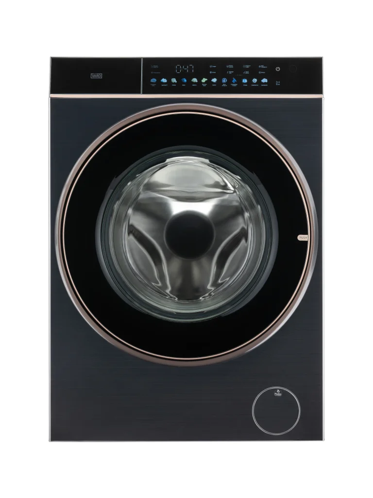 Стиральная машина серого цвета с эксклюзивной медной отделкой обладает максимальной загрузкой 10 кг и скоростью отжима 1400 об/мин и сочетает в себе стильный лаконичный дизайн и большую вместительность.