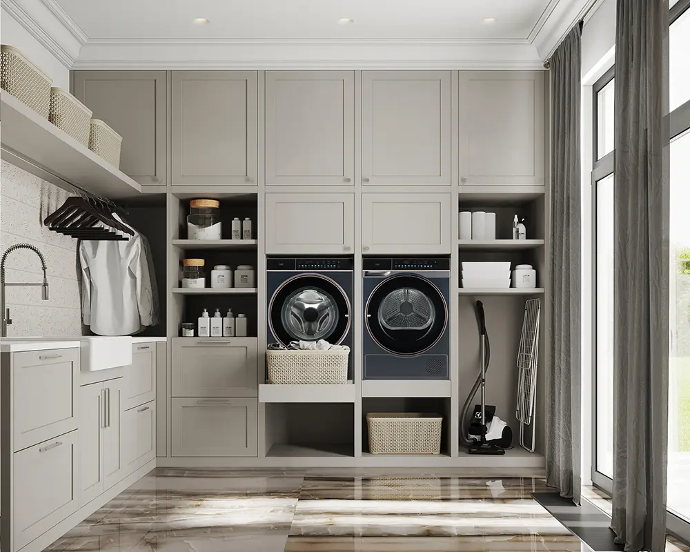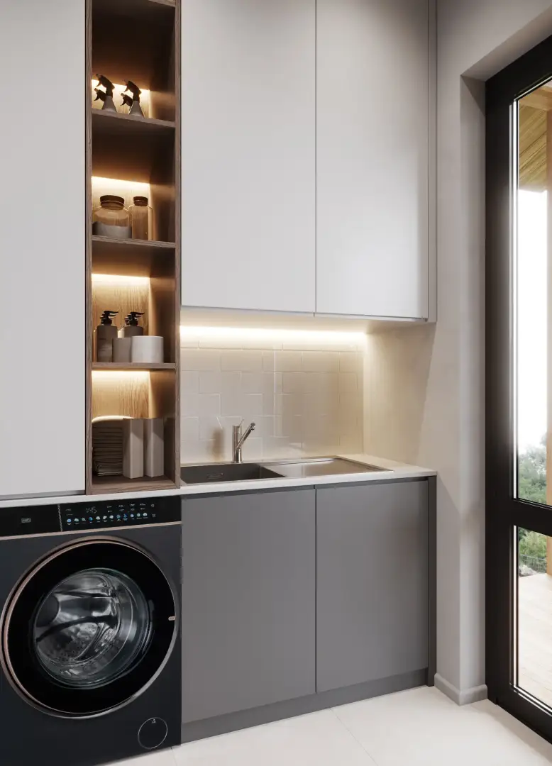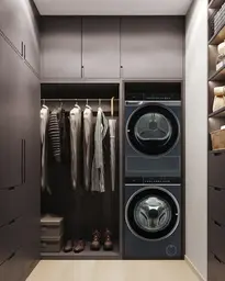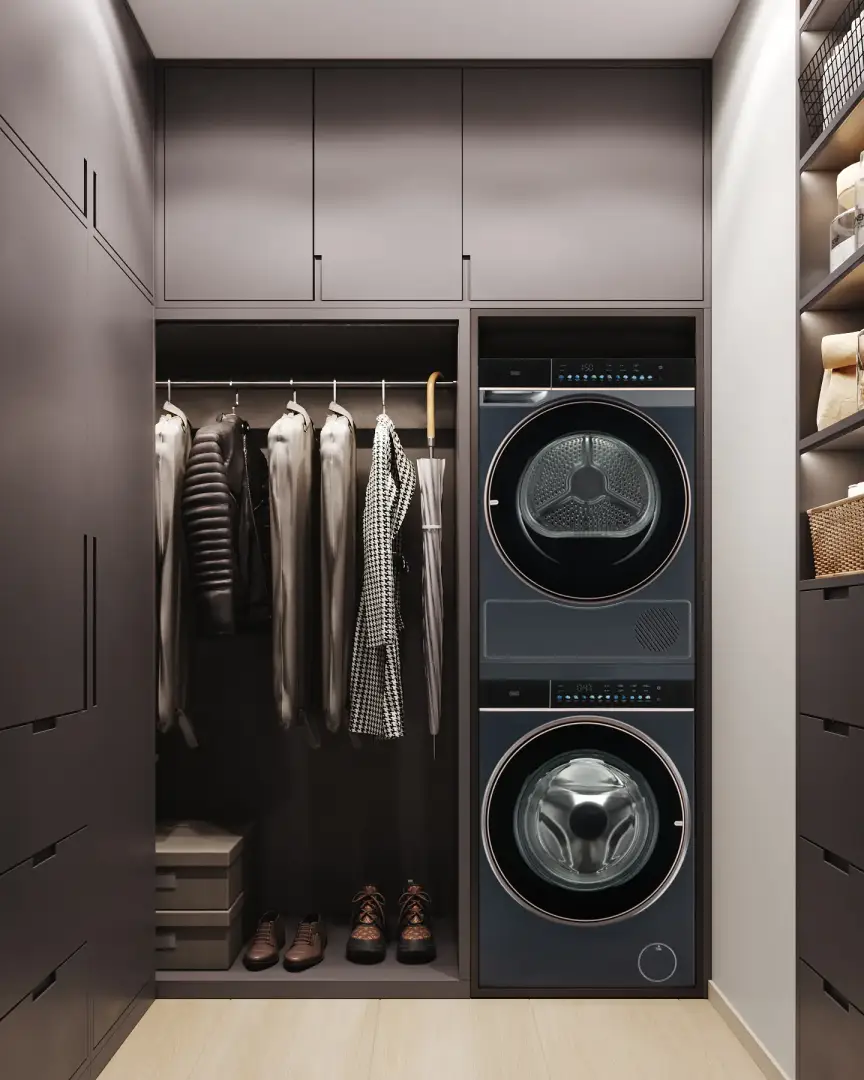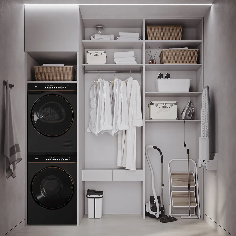 Стиральная машина серого цвета с эксклюзивной медной отделкой обладает максимальной загрузкой 10 кг и скоростью отжима 1400 об/мин и сочетает в себе стильный лаконичный дизайн и большую вместительность.