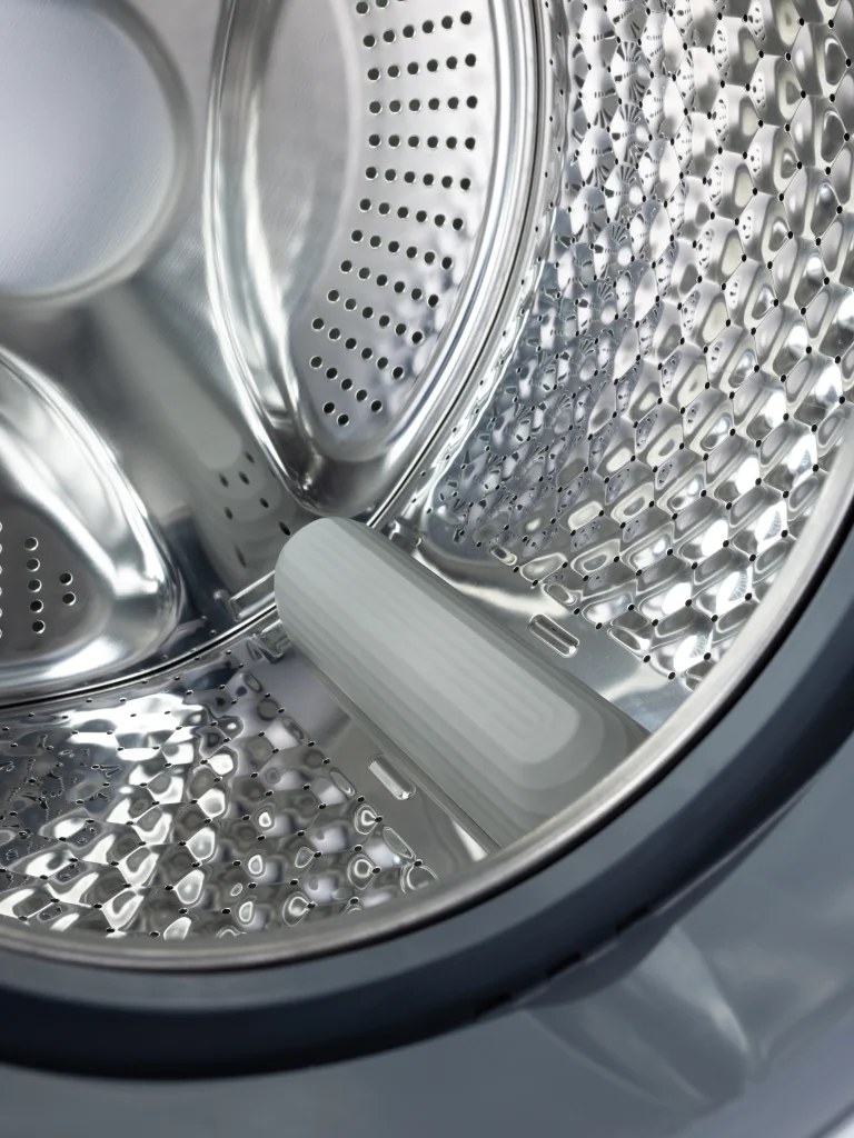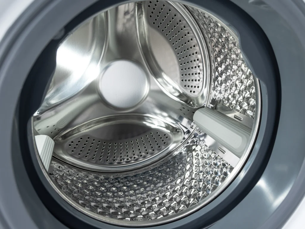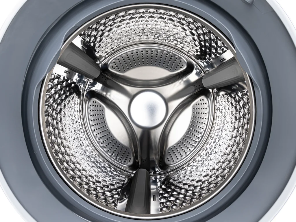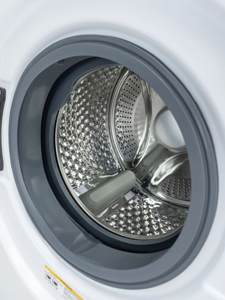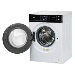 Стиральная машина белого цвета с максимальной загрузкой 10 кг и скоростью отжима 1400 об/мин обладает стильным лаконичным дизайном и большой вместительностью.