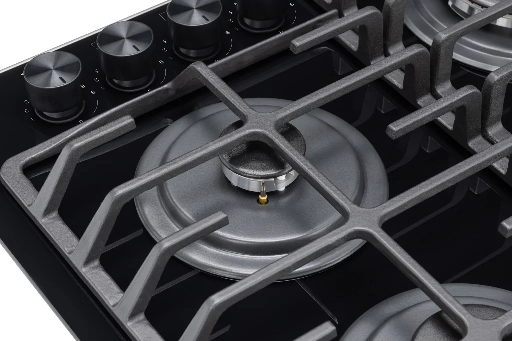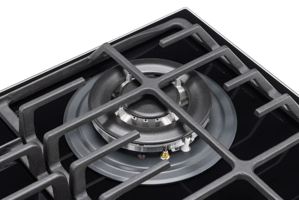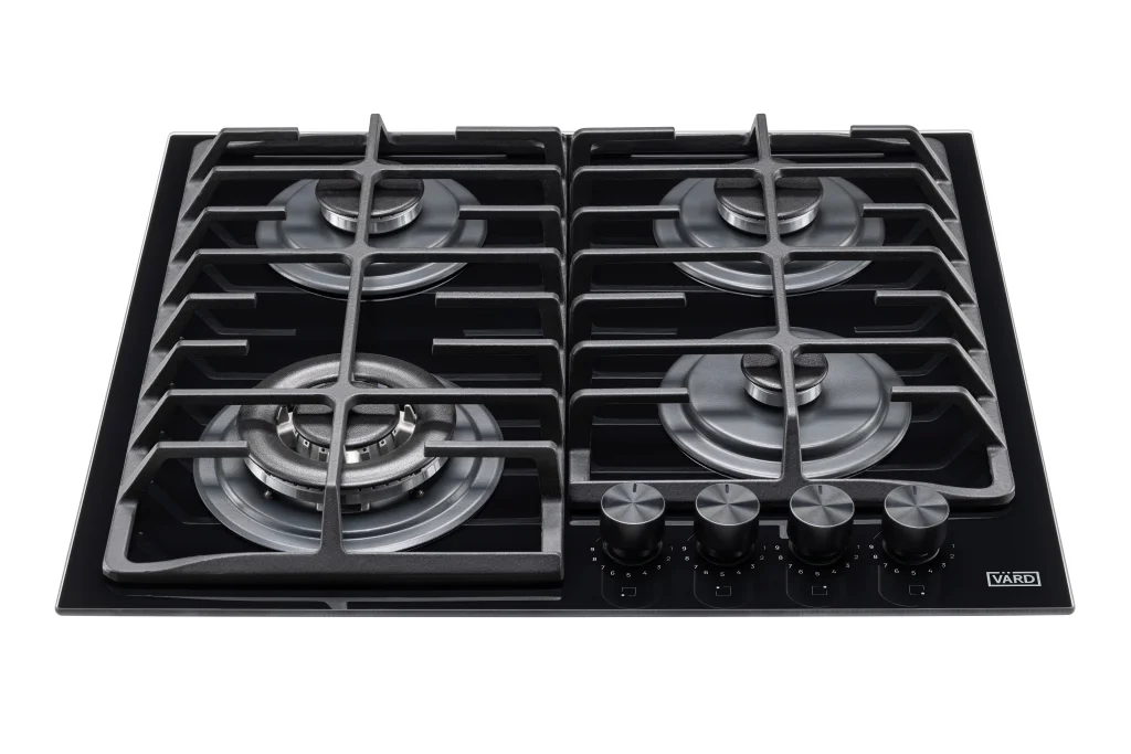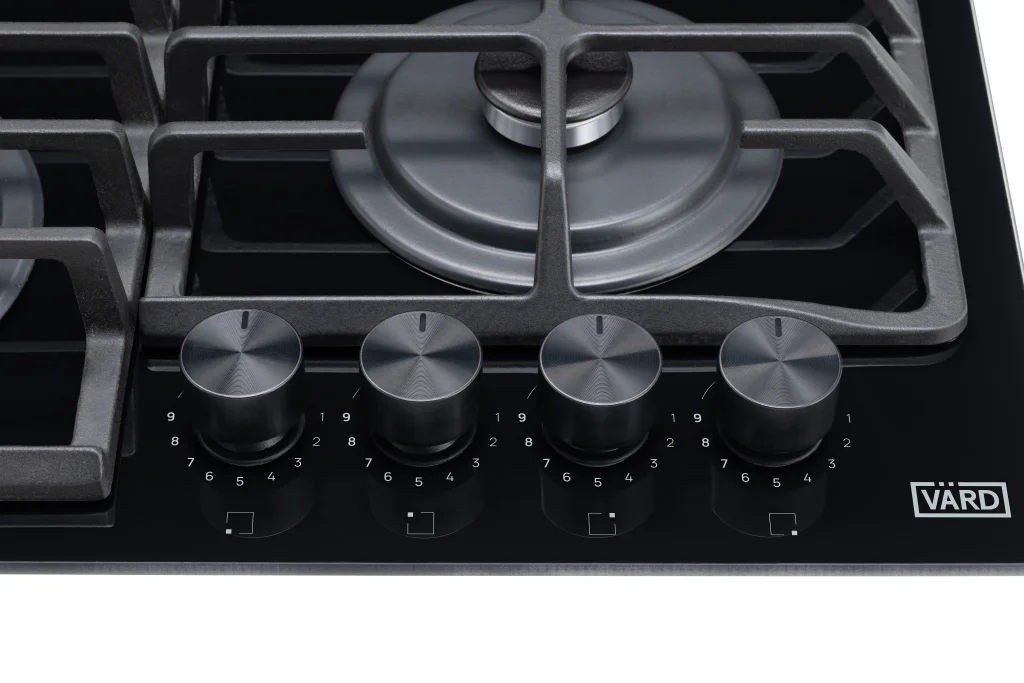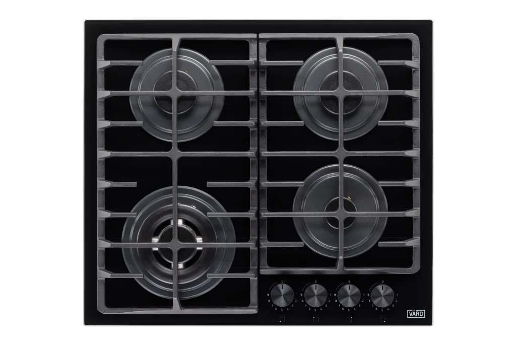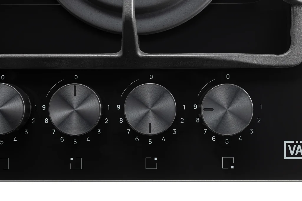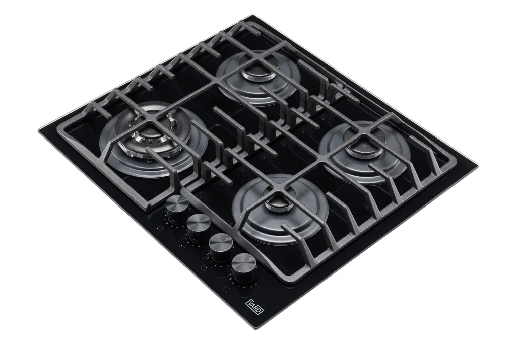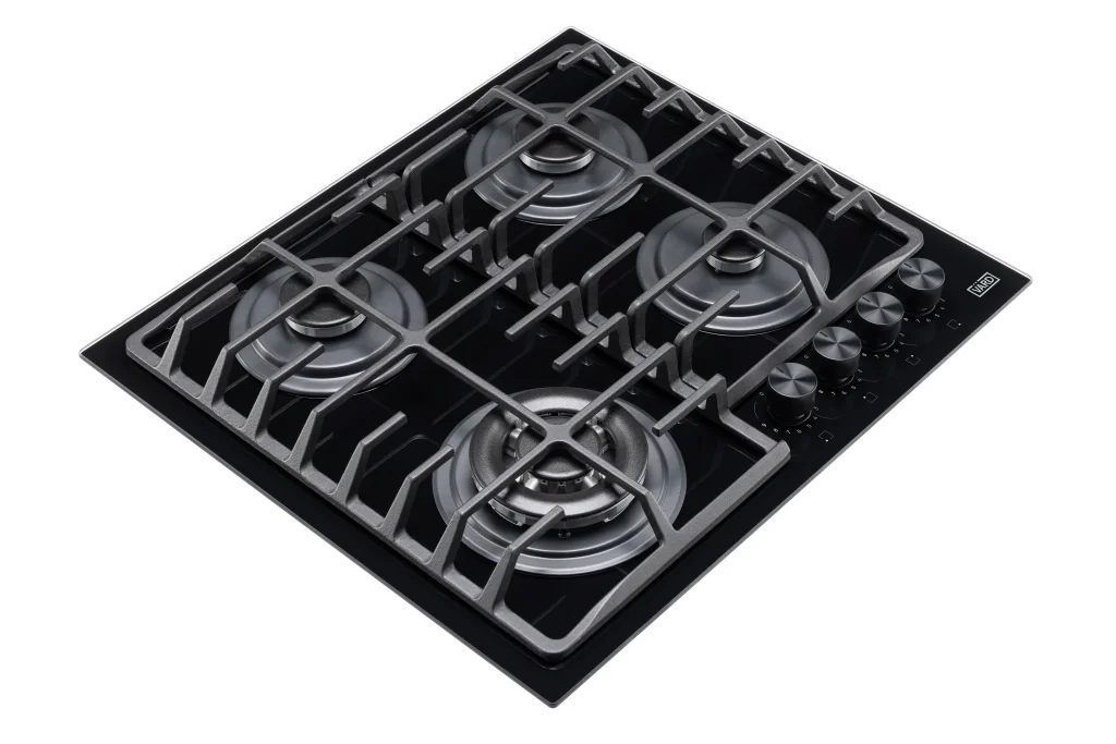 Газовая варочная панель из черного стекла шириной 60 см сочетает в себе безопасность, комфорт в использовании и стильный дизайн