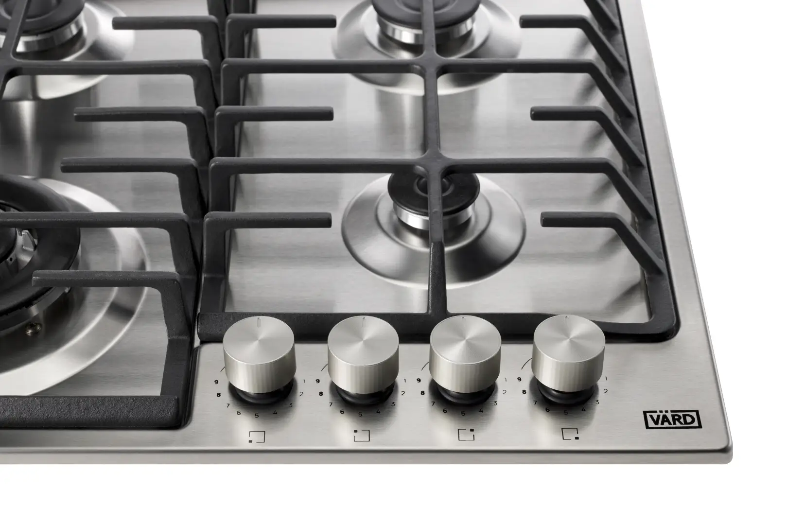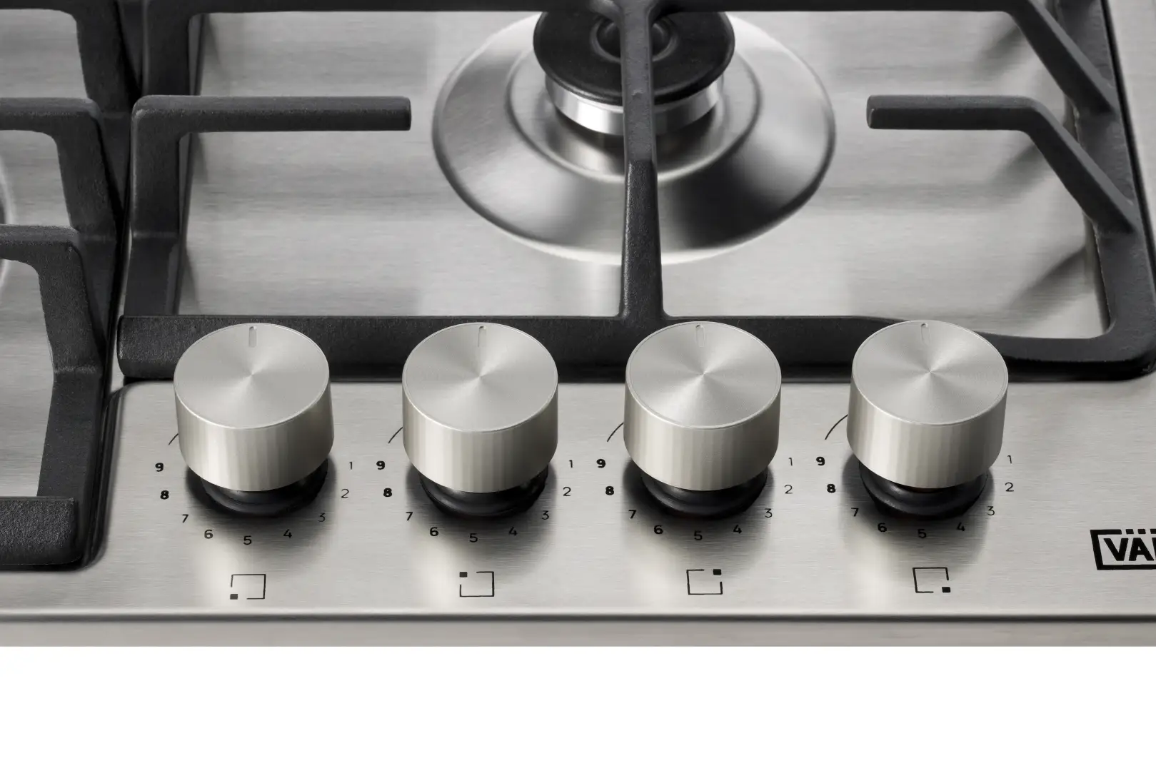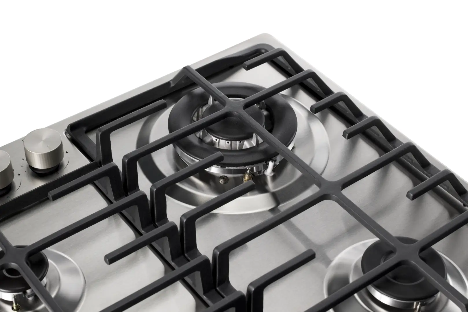 Газовая варочная панель из нержавеющей стали шириной 60 см сочетает в себе безопасность и комфорт в использовании