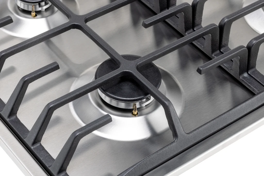 Газовая варочная панель из нержавеющей стали шириной 60 см сочетает в себе безопасность и комфорт в использовании