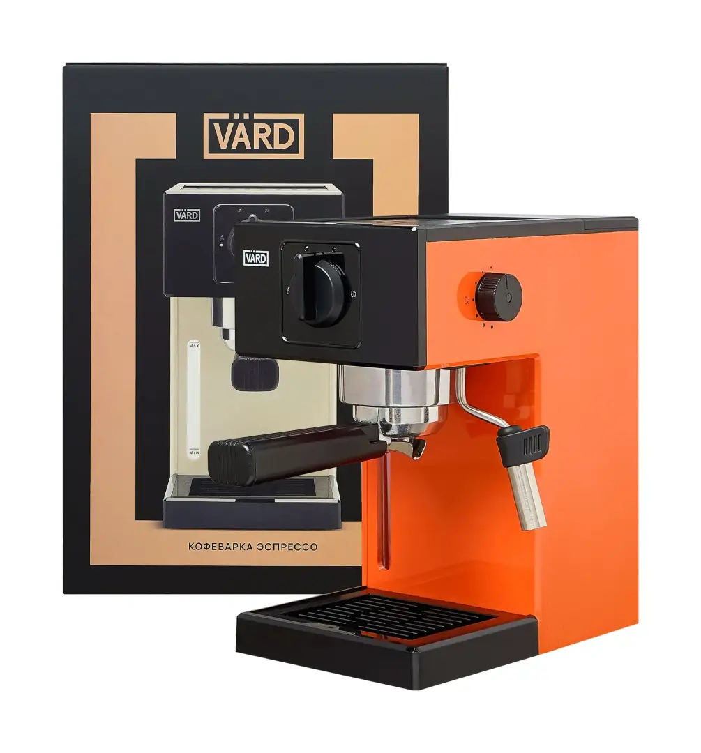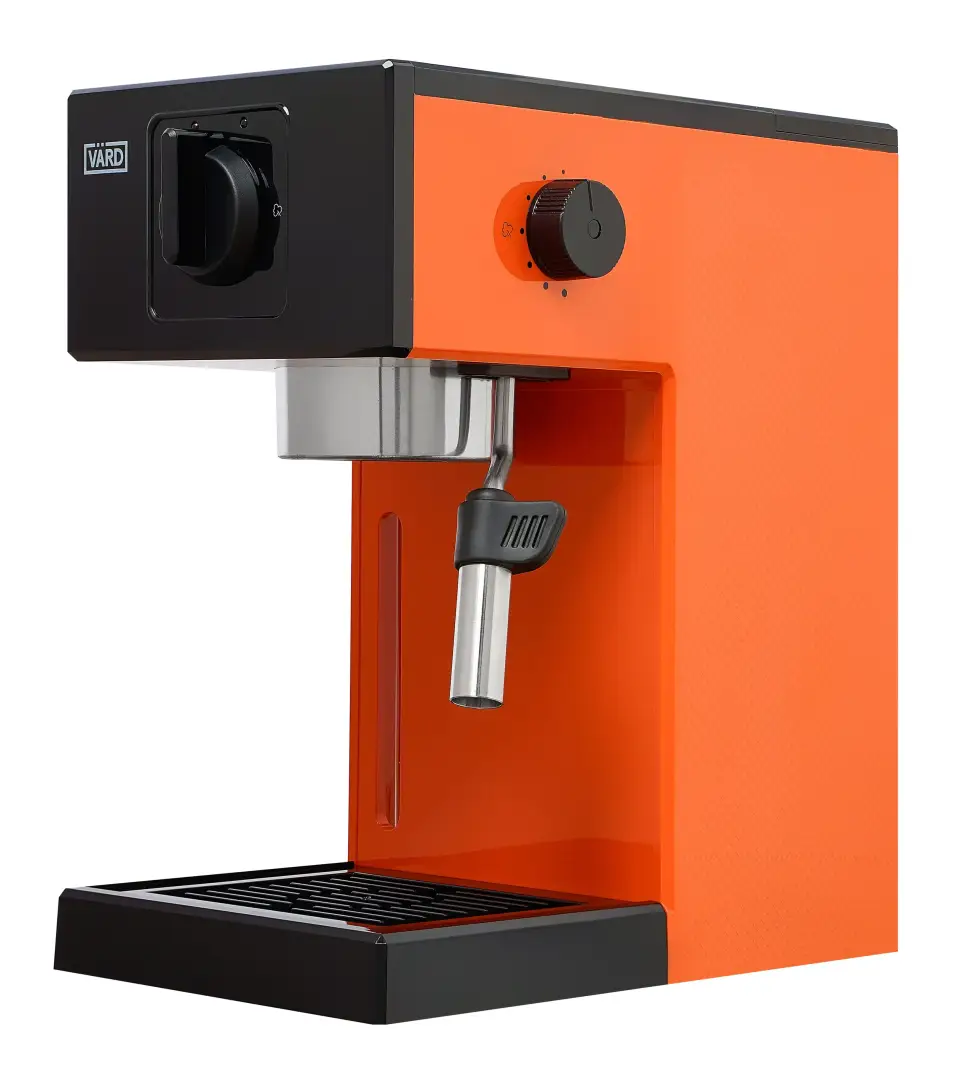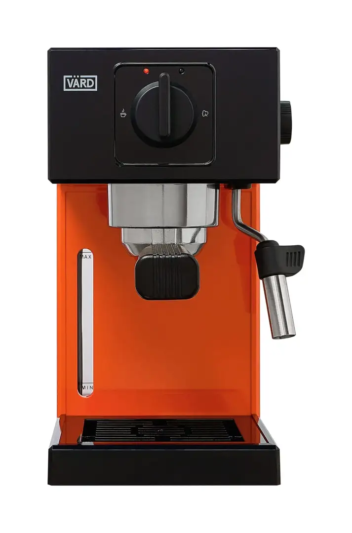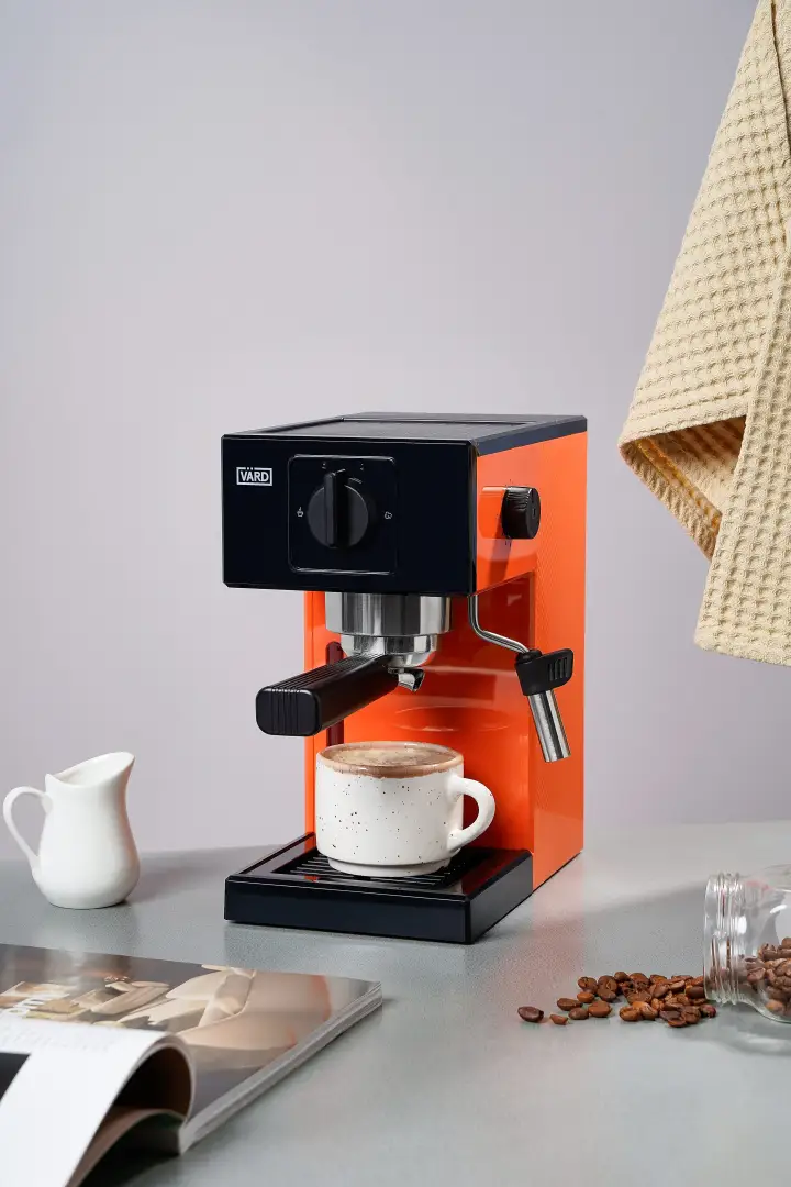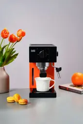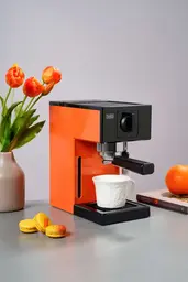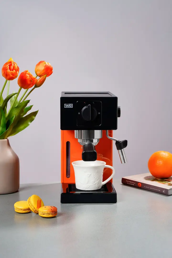 Кофеварка оранжевого цвета станет ярким и элегантным дополнением дополнением стильного интерьера кухни