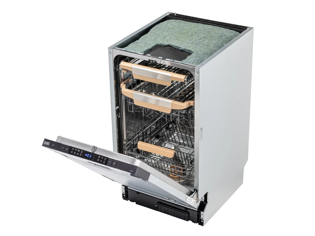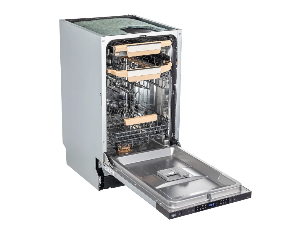 Узкая посудоемочная машина обладает стильным лаконичным дизайном, защитой от протечек и антибактериальным фильтром.