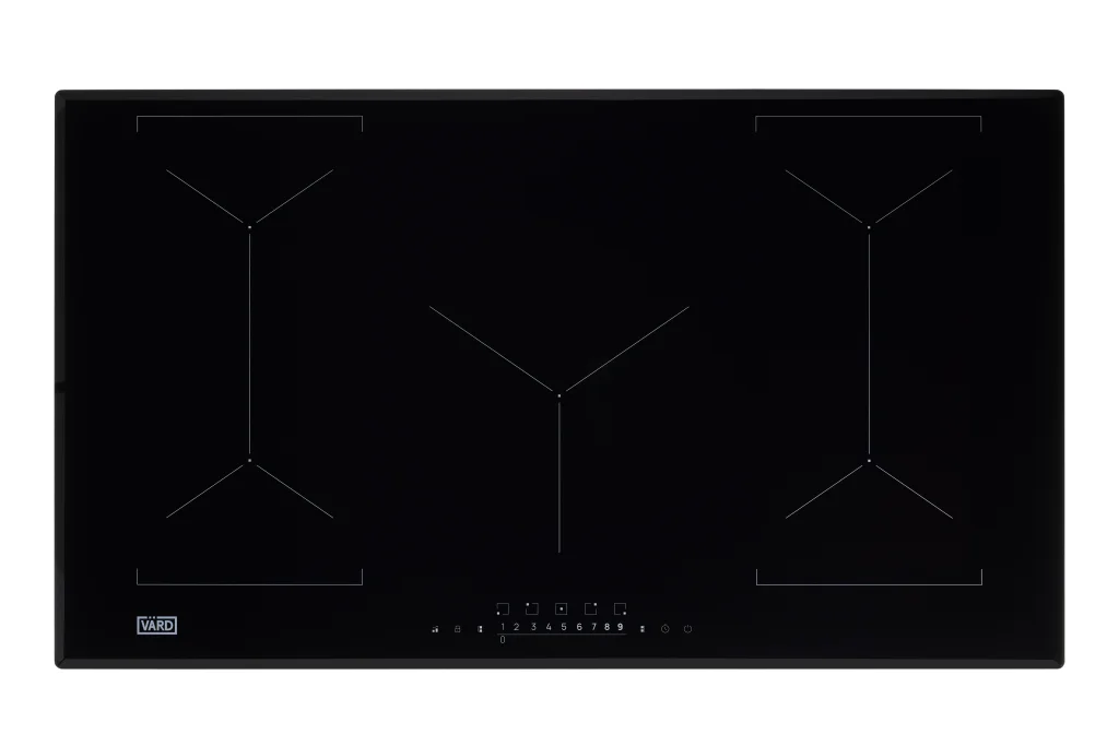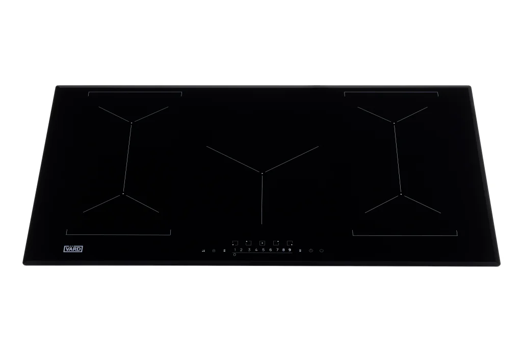 Встраиваемая индукционная варочная панель шириной 90 сантиметров подарит свободу в приготовлении блюд на посуде разной формы и размеров.