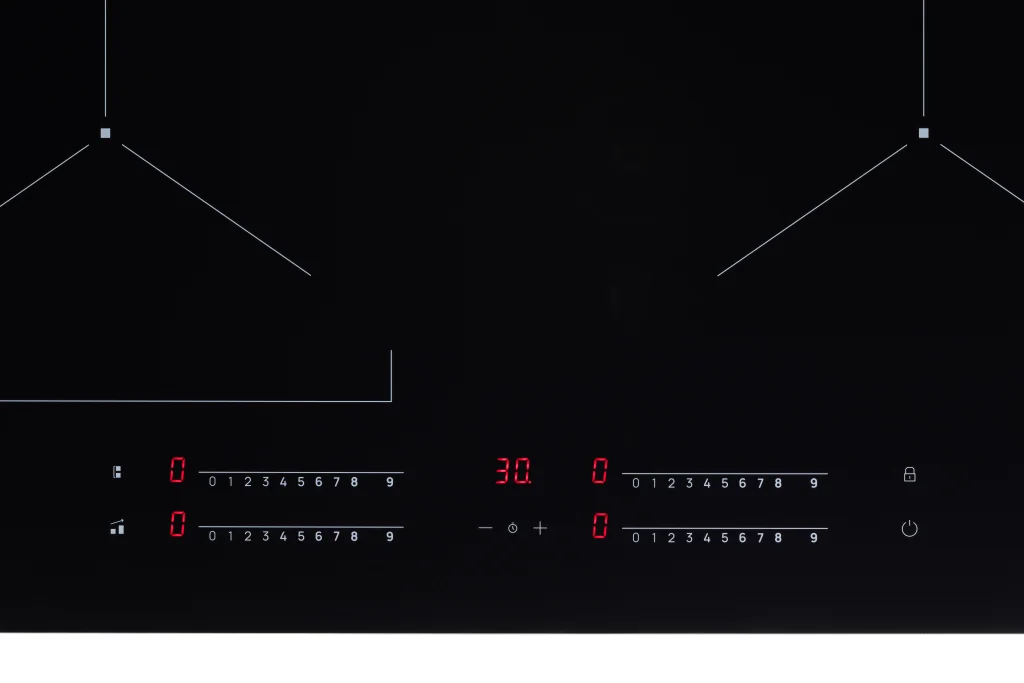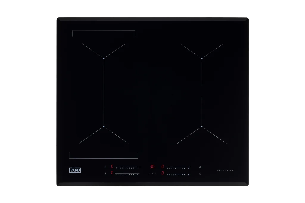 Встраиваемая индукционная варочная панель черного цвета объединяет в себе скорость и удобство индукционного нагрева со стильным дизайном черного стекла со скошенными краями.