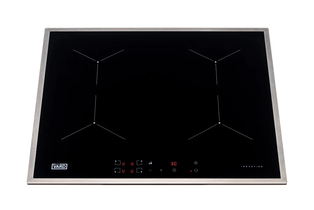 Встраиваемая индукционная варочная панель черного цвета и рамкой из нержавеющей стали объединяет в себе стильный дизайн и все преимущества индукционного нагрева.