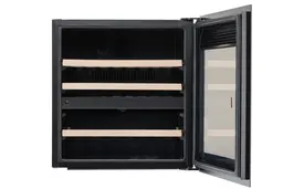 Компрессорный винный шкаф вместимостью 36 бутылок в лаконичном дизайне из черного стекла