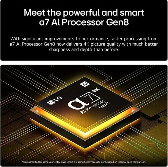 ✅ Уникальная технология широкой цветовой гаммы LG обеспечивает повышенную скорость цветопередачи.✅ Благодаря улучшенным характеристикам и ускоренной обработке альфа-процессор α7 4K Gen8 с ИИ обеспечивает качество изображения 4K повышенной резкости и глубины.✅ Мощный процессор LG обеспечивает разрешение оригинального качества. Наслаждайтесь высоким разрешением, яркостью и четкостью изображения благодаря 4K Super Upscaling.✅ Легко управляйте телевизором с помощью пульта AI Magic Remote: благодаря датчику движения и колесу прокрутки наведите курсор и щелкните, чтобы использовать пульт как мышку или просто произнесите голосовую команду.✅ Пульт AI Magic Remote от LG на абстрактном фоне. Кнопка «ИИ» выделена. Есть графическое изображение пользовательского интерфейса с иконками, показывающее, как кнопка «ИИ» позволяет пользователям получать доступ к различным функциям ИИ. Сервисы включают AI Voice ID, AI Search, AI Chatbot, AI Concierge, AI Picture Wizard и AI Sound Wizard. Затем демонстрируется функциональность, похожая на работу мыши –– курсор на интерфейсе показывает, как пульт предлагает упрощенное управление.✅ Анализируя 1,6 миллиарда вариантов возможных изображений усовершенствованный алгоритм предлагает вам выбрать настройки изображения. Далее на основе вашего выбора телевизор создает персонализированную настройку специально для вас.✅ Уникальная технология широкой цветовой гаммы LG обеспечивает повышенную скорость цветопередачи.✅ Благодаря улучшенным характеристикам и ускоренной обработке альфа-процессор α7 4K Gen8 с ИИ обеспечивает качество изображения 4K повышенной резкости и глубины.✅ Мощный процессор LG обеспечивает разрешение оригинального качества. Наслаждайтесь высоким разрешением, яркостью и четкостью изображения благодаря 4K Super Upscaling.✅ Легко управляйте телевизором с помощью пульта AI Magic Remote: благодаря датчику движения и колесу прокрутки наведите курсор и щелкните, чтобы использовать пульт как мышку или просто произнесите голосовую команду.✅ Пульт AI Magic Remote от LG на абстрактном фоне. Кнопка «ИИ» выделена. Есть графическое изображение пользовательского интерфейса с иконками, показывающее, как кнопка «ИИ» позволяет пользователям получать доступ к различным функциям ИИ. Сервисы включают AI Voice ID, AI Search, AI Chatbot, AI Concierge, AI Picture Wizard и AI Sound Wizard. Затем демонстрируется функциональность, похожая на работу мыши –– курсор на интерфейсе показывает, как пульт предлагает упрощенное управление.✅ Анализируя 1,6 миллиарда вариантов возможных изображений усовершенствованный алгоритм предлагает вам выбрать настройки изображения. Далее на основе вашего выбора телевизор создает персонализированную настройку специально для вас.