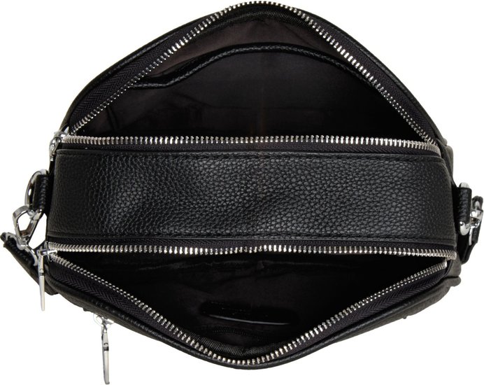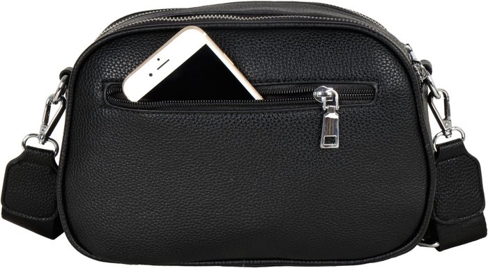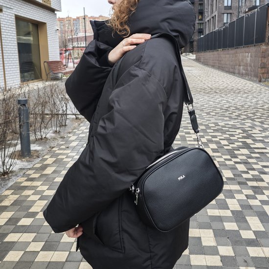 Стильная повседневная сумка фирмы Pola выполненная из мягкой экокожи, представляет собой идеальный аксессуар для современной женщины. Она обладает двумя просторными отделениями, каждое из которых защищено собственной молнией. Внутри находится дополнительный карман для мелких предметов. Сзади небольшой карман на молнии. Модель среднего размера выполнена в черном цвете, что делает её универсальной и подходящей к любому наряду. В комплекте съемный плечевой ремень длиной 150 см. Сумочка кросс-боди идеально подойдёт для повседневного использования. Цвет фурнитуры-серебро.Стильная повседневная сумка фирмы Pola выполненная из мягкой экокожи, представляет собой идеальный аксессуар для современной женщины. Она обладает двумя просторными отделениями, каждое из которых защищено собственной молнией. Внутри находится дополнительный карман для мелких предметов. Сзади небольшой карман на молнии. Модель среднего размера выполнена в черном цвете, что делает её универсальной и подходящей к любому наряду. В комплекте съемный плечевой ремень длиной 150 см. Сумочка кросс-боди идеально подойдёт для повседневного использования. Цвет фурнитуры-серебро.
