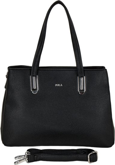 Стильная женская сумка-тоут фирмы Pola выполнена из экокожи и предназначена для повседневного использования. Основное отделение закрывается на металлическую молнию. Внутри три независимых отделения. В двух из них есть небольшие карманы, для мелочи. Сзади сумки небольшой кармашек на молнии. У сумки есть ручки для переноски, высота которых составляет 21 см их можно украсить платком и два съёмных, ремешка, один из экокожи тонкий регулируемый длина которого- 128 см. Цвет фурнитуры-серебро.Стильная женская сумка-тоут фирмы Pola выполнена из экокожи и предназначена для повседневного использования. Основное отделение закрывается на металлическую молнию. Внутри три независимых отделения. В двух из них есть небольшие карманы, для мелочи. Сзади сумки небольшой кармашек на молнии. У сумки есть ручки для переноски, высота которых составляет 21 см их можно украсить платком и два съёмных, ремешка, один из экокожи тонкий регулируемый длина которого- 128 см. Цвет фурнитуры-серебро.