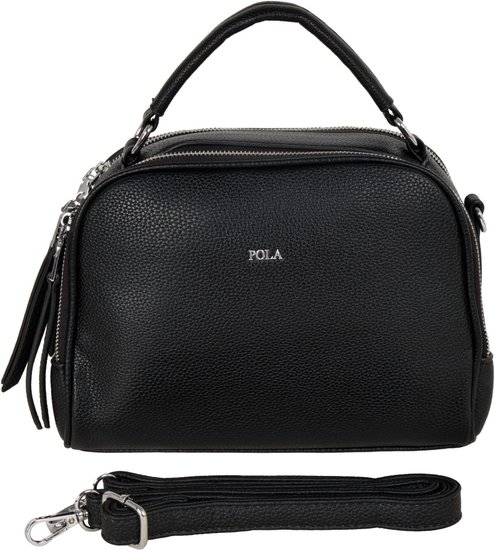 Стильная повседневная сумка фирмы Pola выполненная из мягкой экокожи, представляет собой идеальный аксессуар для современной женщины. Она обладает двумя просторными отделениями, каждое из которых защищено собственной молнией. Внутри находится дополнительный карман для мелких предметов. Сзади небольшой карман на молнии. Модель среднего размера выполнена в черном цвете, что делает её универсальной и подходящей к любому наряду. В комплекте съемный плечевой ремень длиной 130 см. Сумочка кросс-боди идеально подойдёт для повседневного использования. Цвет фурнитуры-серебро.Стильная повседневная сумка фирмы Pola выполненная из мягкой экокожи, представляет собой идеальный аксессуар для современной женщины. Она обладает двумя просторными отделениями, каждое из которых защищено собственной молнией. Внутри находится дополнительный карман для мелких предметов. Сзади небольшой карман на молнии. Модель среднего размера выполнена в черном цвете, что делает её универсальной и подходящей к любому наряду. В комплекте съемный плечевой ремень длиной 130 см. Сумочка кросс-боди идеально подойдёт для повседневного использования. Цвет фурнитуры-серебро.