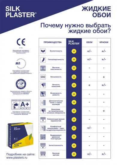 ✅ Обратите внимание, что расход до 5 м² рассчитан на ровные и подготовленные поверхности, а также предполагает наличие опыта работы с материалом. ✅ Master Silk — это жидкие обои эконом класса, идеально подходящие для финишной отделки помещений. Они представляют собой экономичное решение для отделки любых поверхностей (потолок, стена, арки, откосы) в любых внутренних помещениях.✅ Преимущества жидких обоев очевидны: они позволяют сэкономить как на стоимости материала, так и на подготовительных работах благодаря простоте и быстроте нанесения. Материал обладает пластичностью и не трескается при "усадке" дома, что делает его отличным выбором для новых зданий.✅ Ремонтопригодность жидких обоев позволяет легко исправить любые недостатки даже после полного высыхания. Декоративные добавки разнообразят цветовую гамму, придавая уникальность вашему интерьеру.✅ Состав: текстильное волокно, хлопья целлюлозы, связующее, декоративные добавки. Структура гладкая, износостойкость стандартная, влагостойкость отсутствует. Тепло- и шумоизоляция, а также легкость нанесения — на среднем уровне. Цветостойкость хорошая, а ремонтопригодность максимальная.✅ Площадь обработки в 1 слой составляет до 5 м², пропорция разведения — 5 л воды на 1 пакет. Срок хранения не ограничен при герметично закрытой упаковке; хранить в сухом месте.⚠️ Важно! Обязательно ознакомьтесь с инструкцией на упаковке и следуйте рекомендациям, особенно по использованию грунтовки с водостопом и нанесению материала с одного замеса. Цвета на мониторе могут отличаться от реальных.✅ Светло-желтый оттенок жидких обоев Master Silk MS 162 идеально освежит ваш интерьер. Они прекрасно сочетаются с нейтральными светлыми полами, белой мебелью и декором в природных тонах. Этот артикул подходит как для гостиной, так и для спальни или детской.✅ Обратите внимание, что расход до 5 м² рассчитан на ровные и подготовленные поверхности, а также предполагает наличие опыта работы с материалом. ✅ Master Silk — это жидкие обои эконом класса, идеально подходящие для финишной отделки помещений. Они представляют собой экономичное решение для отделки любых поверхностей (потолок, стена, арки, откосы) в любых внутренних помещениях.✅ Преимущества жидких обоев очевидны: они позволяют сэкономить как на стоимости материала, так и на подготовительных работах благодаря простоте и быстроте нанесения. Материал обладает пластичностью и не трескается при "усадке" дома, что делает его отличным выбором для новых зданий.✅ Ремонтопригодность жидких обоев позволяет легко исправить любые недостатки даже после полного высыхания. Декоративные добавки разнообразят цветовую гамму, придавая уникальность вашему интерьеру.✅ Состав: текстильное волокно, хлопья целлюлозы, связующее, декоративные добавки. Структура гладкая, износостойкость стандартная, влагостойкость отсутствует. Тепло- и шумоизоляция, а также легкость нанесения — на среднем уровне. Цветостойкость хорошая, а ремонтопригодность максимальная.✅ Площадь обработки в 1 слой составляет до 5 м², пропорция разведения — 5 л воды на 1 пакет. Срок хранения не ограничен при герметично закрытой упаковке; хранить в сухом месте.⚠️ Важно! Обязательно ознакомьтесь с инструкцией на упаковке и следуйте рекомендациям, особенно по использованию грунтовки с водостопом и нанесению м
