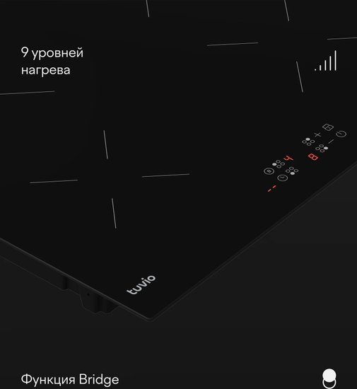 Tuvio HIS21FBA1 — это встраиваемая индукционная варочная панель общей мощностью 7200 Вт. Вместительная и универсальная — 59 см в ширину — легко вписывается в любую кухню. С инверторной технологией панель бесшумно и быстро работает и не тратит лишней электроэнергии.Панель сделана из стеклокерамики. Такое покрытие выдерживает высокие температуры, за ним просто ухаживать мягкими неабразивными средствами.Простое сенсорное управление: достаточно коснуться кнопки, чтобы установить температуру или другие параметры у каждой конфорки. Отслеживать время удобно на встроенном таймере. Индикатор остаточного тепла показывает, какие зоны ещё горячие, чтобы защитить от ожогов. Функция также экономит тепло для догрева блюд.Рабочая поверхность подходит для самых разных задач. С опцией Boost конфорка сразу включается на максимальную мощность и быстро нагревается. Девять уровней нагрева помогают полностью управлять процессом готовки, будь то томление на низких температурах для насыщенного бульона или интенсивное жарение для идеального стейка.Варочная панель поддерживает функцию защитного отключения: поверхность отключается частично или полностью, если долго не используется. Для дополнительной безопасности есть блокировка от детей, чтобы малыш случайно не включил нагрев и не обжёгся.Tuvio HIS21FBA1 — это встраиваемая индукционная варочная панель общей мощностью 7200 Вт. Вместительная и универсальная — 59 см в ширину — легко вписывается в любую кухню. С инверторной технологией панель бесшумно и быстро работает и не тратит лишней электроэнергии.Панель сделана из стеклокерамики. Такое покрытие выдерживает высокие температуры, за ним просто ухаживать мягкими неабразивными средствами.Простое сенсорное управление: достаточно коснуться кнопки, чтобы установить температуру или другие параметры у каждой конфорки. Отслеживать время удобно на встроенном таймере. Индикатор остаточного тепла показывает, какие зоны ещё горячие, чтобы защитить от ожогов. Функция также экономит тепло для догрева блюд.Рабочая поверхность подходит для самых разных задач. С опцией Boost конфорка сразу включается на максимальную мощность и быстро нагревается. Девять уровней нагрева помогают полностью управлять процессом готовки, будь то томление на низких температурах для насыщенного бульона или интенсивное жарение для идеального стейка.Варочная панель поддерживает функцию защитного отключения: поверхность отключается частично или полностью, если долго не используется. Для дополнительной безопасности есть блокировка от детей, чтобы малыш случайно не включил нагрев и не обжёгся.
