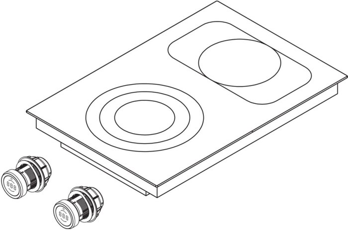 - Подробная информация о конфорках Задняя конфорка 2 контура - Ø 165 мм/ 290 x 165 мм, мощность 1500/2600 Вт. Передняя конфорка 3 контура - Ø 120/180/235 мм, мощность 800/1600/2500 Вт.
