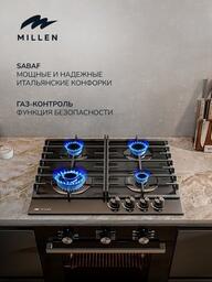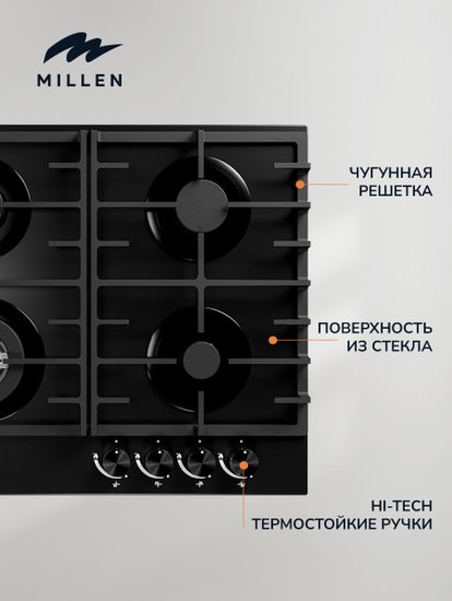 ✅Ключевые характеристикиВстраиваемая газовая варочная панель оборудована четырьмя зонами нагрева, включая мощную WOK-конфорку на 4000 Вт, что позволяет готовить блюда разных кухонь одновременно. Рабочая поверхность выполнена из закалённого стекла, ширина устройства составляет 60 см, управление осуществляется механическими поворотными ручками.✅Преимущества и отличияОсновными преимуществами являются наличие автоматического электроподжига на всех конфорках, итальянские газовые клапаны SABAF для стабильной и безопасной работы, а также чугунные решётки, которые устойчивы к высоким температурам и не скользят во время готовки.✅ПрактичностьПанель подходит как для магистрального, так и для баллонного газа, в комплекте предусмотрен набор жиклёров для конверсии. Простое интуитивное управление и газ-контроль каждой конфорки обеспечивают дополнительную безопасность и удобство в эксплуатации.✅УникальностьМодель выделяется оригинальным дизайном чугунных решёток, а также увеличенной мощностью одной зоны для приготовления на WOK. Такой функционал редко встречается в стандартных газовых панелях, что делает устройство особенно привлекательным для ценителей азиатской кухни и любителей кулинарных экспериментов.✅Ключевые характеристикиВстраиваемая газовая варочная панель оборудована четырьмя зонами нагрева, включая мощную WOK-конфорку на 4000 Вт, что позволяет готовить блюда разных кухонь одновременно. Рабочая поверхность выполнена из закалённого стекла, ширина устройства составляет 60 см, управление осуществляется механическими поворотными ручками.✅Преимущества и отличияОсновными преимуществами являются наличие автоматического электроподжига на всех конфорках, итальянские газовые клапаны SABAF для стабильной и безопасной работы, а также чугунные решётки, которые устойчивы к высоким температурам и не скользят во время готовки.✅ПрактичностьПанель подходит как для магистрального, так и для баллонного газа, в комплекте предусмотрен набор жиклёров для конверсии. Простое интуитивное управление и газ-контроль каждой конфорки обеспечивают дополнительную безопасность и удобство в эксплуатации.✅УникальностьМодель выделяется оригинальным дизайном чугунных решёток, а также увеличенной мощностью одной зоны для приготовления на WOK. Такой функционал редко встречается в стандартных газовых панелях, что делает устройство особенно привлекательным для ценителей азиатской кухни и любителей кулинарных экспериментов.