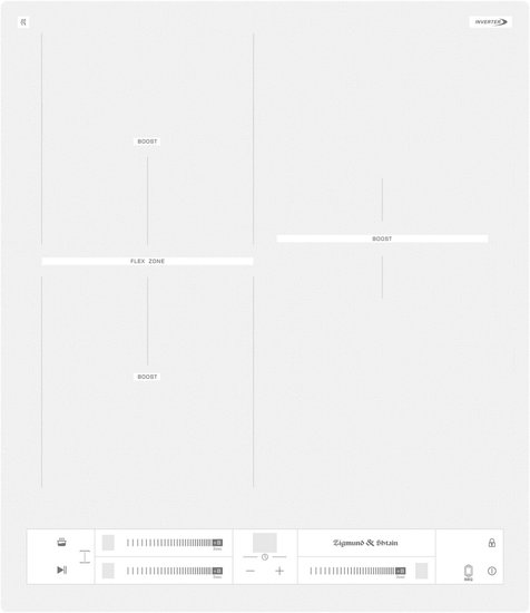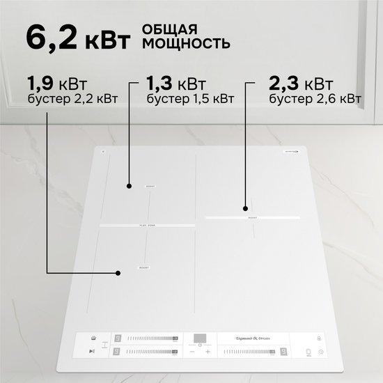 Подробная информация о конфоркахБлижняя левая 180 мм, 1900/2200Дальняя левая 180 мм, 1300/1500Левая Flex-зона 180*380 мм, 3000/3600Дальняя правая 180 мм, 2300/2600