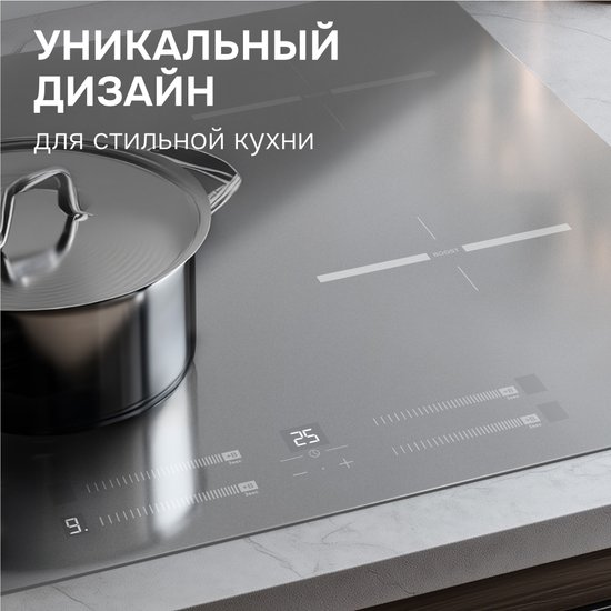 ✅Ключевые характеристикиСтеклокерамическая варочная панель рассчитана на 4 конфорки и оснащена сенсорным управлением, что обеспечивает удобство в эксплуатации и точную настройку мощности. Такая модель подходит для современных кухонь, где ценится сочетание функциональности и стиля.✅Преимущества и отличияОсновные преимущества данной варочной панели - легкость ухода за стеклокерамической поверхностью и наличие индикатора остаточного тепла, повышающего безопасность использования. Сенсорное управление позволяет быстро выбирать нужный режим без дополнительных механических элементов.✅ПрактичностьПанель поддерживает функцию таймера и блокировку от детей, что актуально для семей с маленькими детьми и занятых пользователей. Расположение органов управления спереди обеспечивает быстрый доступ к основным функциям даже при интенсивной готовке.✅УникальностьК особенностям данной модели относится современный минималистичный дизайн без рамки, что позволяет гармонично вписать панель в любую кухонную столешницу и облегчает процесс очистки после использования✅Ключевые характеристикиСтеклокерамическая варочная панель рассчитана на 4 конфорки и оснащена сенсорным управлением, что обеспечивает удобство в эксплуатации и точную настройку мощности. Такая модель подходит для современных кухонь, где ценится сочетание функциональности и стиля.✅Преимущества и отличияОсновные преимущества данной варочной панели - легкость ухода за стеклокерамической поверхностью и наличие индикатора остаточного тепла, повышающего безопасность использования. Сенсорное управление позволяет быстро выбирать нужный режим без дополнительных механических элементов.✅ПрактичностьПанель поддерживает функцию таймера и блокировку от детей, что актуально для семей с маленькими детьми и занятых пользователей. Расположение органов управления спереди обеспечивает быстрый доступ к основным функциям даже при интенсивной готовке.✅УникальностьК особенностям данной модели относится современный минималистичный дизайн без рамки, что позволяет гармонично вписать панель в любую кухонную столешницу и облегчает процесс очистки после использования