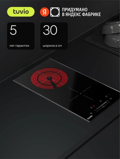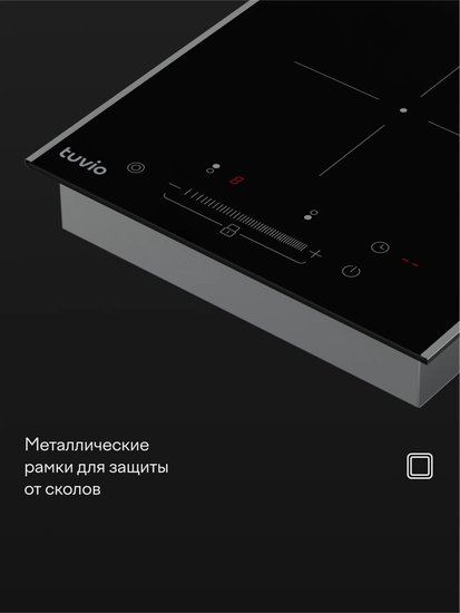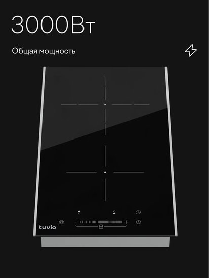 Tuvio HRD82HBB1 — это встраиваемая электрическая варочная панель общей мощностью 3000 Вт. Узкая — всего 28.8 см в ширину — подойдёт для компактной кухни. Современная технология быстрого нагрева Hi-Light взаимодействует с любой посудой: поверхность чувствительна даже к небольшому диаметру дна.Панель сделана из стеклокерамики. Такое покрытие выдерживает высокие температуры, за ним просто ухаживать мягкими неабразивными средствами.Сенсорный слайдер отвечает за простое управление: достаточно провести пальцем, чтобы установить температуру или другие параметры конфорок. Даже максимальные значения можно настроить одним касанием. Отслеживать время удобно на встроенном таймере.Рабочая поверхность подходит для самых разных задач. Специальное двойное расширение контура конфорки помогает увеличивать зону нагрева. Функция пригодится и для больших круглых блюд, и для грилевых сковород. Тонкое металлическое обрамление по периметру защищает панель от сколов и повреждений.Варочная панель поддерживает функцию защитного отключения: поверхность отключается частично или полностью, если долго не используется. Для дополнительной безопасности есть блокировка от детей, чтобы малыш случайно не включил нагрев и не обжёгся.Tuvio HRD82HBB1 — это встраиваемая электрическая варочная панель общей мощностью 3000 Вт. Узкая — всего 28.8 см в ширину — подойдёт для компактной кухни. Современная технология быстрого нагрева Hi-Light взаимодействует с любой посудой: поверхность чувствительна даже к небольшому диаметру дна.Панель сделана из стеклокерамики. Такое покрытие выдерживает высокие температуры, за ним просто ухаживать мягкими неабразивными средствами.Сенсорный слайдер отвечает за простое управление: достаточно провести пальцем, чтобы установить температуру или другие параметры конфорок. Даже максимальные значения можно настроить одним касанием. Отслеживать время удобно на встроенном таймере.Рабочая поверхность подходит для самых разных задач. Специальное двойное расширение контура конфорки помогает увеличивать зону нагрева. Функция пригодится и для больших круглых блюд, и для грилевых сковород. Тонкое металлическое обрамление по периметру защищает панель от сколов и повреждений.Варочная панель поддерживает функцию защитного отключения: поверхность отключается частично или полностью, если долго не используется. Для дополнительной безопасности есть блокировка от детей, чтобы малыш случайно не включил нагрев и не обжёгся.