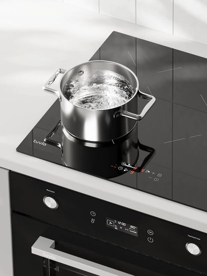 ✅Индукционная варочная панель Tuvio HIT22FBA1 - это современное и удобное решение для кухни, которое сочетает в себе высокую мощность, инверторную технологию и простоту управления. Модель рассчитана на встраивание в стандартную нишу шириной 56 см и глубиной 49 см, что позволяет легко интегрировать ее в любой кухонный гарнитур. Рабочая поверхность выполнена из прочной стеклокерамики, устойчива к высоким температурам и проста в уходе.✅Панель оснащена тремя индукционными конфорками различного диаметра:16, 21 и 29 см, что позволяет использовать посуду разных размеров и готовить как небольшие, так и объемные блюда. Особенностью модели является крупная правая конфорка, которая идеально подходит для больших сковород и кастрюль, а также функция Booster, обеспечивающая быстрый нагрев. Встроенный инвертор позволяет добиваться плавной регулировки мощности и минимизировать шум при работе.✅Управление плитой осуществляется с помощью сенсорных кнопок, расположенных спереди панели, что делает процесс интуитивно понятным и удобным. Для безопасности предусмотрена блокировка от детей, автоматическое защитное отключение, а также индикатор остаточного тепла для предотвращения ожогов. Встроенный таймер и функция поддержания тепла обеспечивают дополнительный комфорт при приготовлении пищи.✅Tuvio HIT22FBA1 подойдет для тех, кто ценит качественную бытовую технику по доступной цене. Модель оснащена всеми необходимыми функциями для ежедневного использования:автоматика закипания, кратковременная пауза, распознавание наличия и размера посуды. Официальная гарантия 5 лет и заявленный срок службы до 7 лет подтверждают надежность и долговечность устройства.✅Индукционная варочная панель Tuvio HIT22FBA1 - это современное и удобное решение для кухни, которое сочетает в себе высокую мощность, инверторную технологию и простоту управления. Модель рассчитана на встраивание в стандартную нишу шириной 56 см и глубиной 49 см, что позволяет легко интегрировать ее в любой кухонный гарнитур. Рабочая поверхность выполнена из прочной стеклокерамики, устойчива к высоким температурам и проста в уходе.✅Панель оснащена тремя индукционными конфорками различного диаметра:16, 21 и 29 см, что позволяет использовать посуду разных размеров и готовить как небольшие, так и объемные блюда. Особенностью модели является крупная правая конфорка, которая идеально подходит для больших сковород и кастрюль, а также функция Booster, обеспечивающая быстрый нагрев. Встроенный инвертор позволяет добиваться плавной регулировки мощности и минимизировать шум при работе.✅Управление плитой осуществляется с помощью сенсорных кнопок, расположенных спереди панели, что делает процесс интуитивно понятным и удобным. Для безопасности предусмотрена блокировка от детей, автоматическое защитное отключение, а также индикатор остаточного тепла для предотвращения ожогов. Встроенный таймер и функция поддержания тепла обеспечивают дополнительный комфорт при приготовлении пищи.✅Tuvio HIT22FBA1 подойдет для тех, кто ценит качественную бытовую технику по доступной цене. Модель оснащена всеми необходимыми функциями для ежедневного использования:автоматика закипания, кратковременная пауза, распознавание наличия и размера посуды. Официальная гарантия 5 лет и заявленный срок службы до 7 лет подтверждают надежность и д