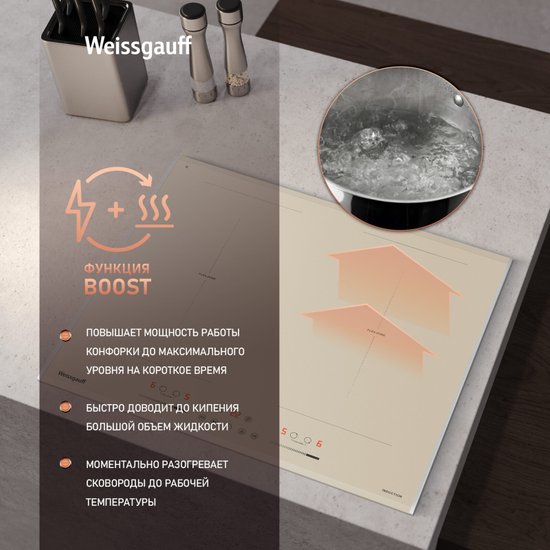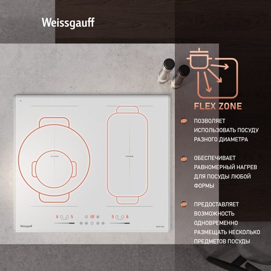 ✅Ключевые характеристикиИндукционная варочная панель рассчитана на 4 конфорки с общей мощностью до 7200 Вт, что обеспечивает быстрый нагрев и высокую производительность. Размеры устройства — 59 см по ширине и 52 см по глубине, установка независимая. Сенсорное управление с двойным слайдером One Touch обеспечивает простоту регулировки мощности и гибкость настройки.✅Преимущества и отличияМодель отличается наличием инверторного блока с 10-летней гарантией, что обеспечивает низкий уровень шума и эффективное энергопотребление. Технология Flex Zone позволяет использовать посуду любого размера, а функция Boost обеспечивает ускоренный нагрев выбранной зоны. Защита от детей и автоматическое отключение повышают уровень безопасности.✅ПрактичностьВстроенный таймер до 99 минут, функция поддержания тепла и индикация остаточного тепла делают повседневное использование максимально удобным. Панель изготовлена из стеклокерамики Vitro Ceramic Glass, устойчива к царапинам и высоким температурам, что гарантирует долговечность и легкость в уходе.✅УникальностьТехнология непрерывного нагрева на всех уровнях мощности обеспечивает максимально точный контроль температуры, что особенно важно для сложных кулинарных задач. Наличие функции BBQ позволяет готовить мясо на гриле прямо на варочной поверхности, а возможность постановки приготовления на паузу делает рабочий процесс гибким и современным.✅Ключевые характеристикиИндукционная варочная панель рассчитана на 4 конфорки с общей мощностью до 7200 Вт, что обеспечивает быстрый нагрев и высокую производительность. Размеры устройства — 59 см по ширине и 52 см по глубине, установка независимая. Сенсорное управление с двойным слайдером One Touch обеспечивает простоту регулировки мощности и гибкость настройки.✅Преимущества и отличияМодель отличается наличием инверторного блока с 10-летней гарантией, что обеспечивает низкий уровень шума и эффективное энергопотребление. Технология Flex Zone позволяет использовать посуду любого размера, а функция Boost обеспечивает ускоренный нагрев выбранной зоны. Защита от детей и автоматическое отключение повышают уровень безопасности.✅ПрактичностьВстроенный таймер до 99 минут, функция поддержания тепла и индикация остаточного тепла делают повседневное использование максимально удобным. Панель изготовлена из стеклокерамики Vitro Ceramic Glass, устойчива к царапинам и высоким температурам, что гарантирует долговечность и легкость в уходе.✅УникальностьТехнология непрерывного нагрева на всех уровнях мощности обеспечивает максимально точный контроль температуры, что особенно важно для сложных кулинарных задач. Наличие функции BBQ позволяет готовить мясо на гриле прямо на варочной поверхности, а возможность постановки приготовления на паузу делает рабочий процесс гибким и современным.