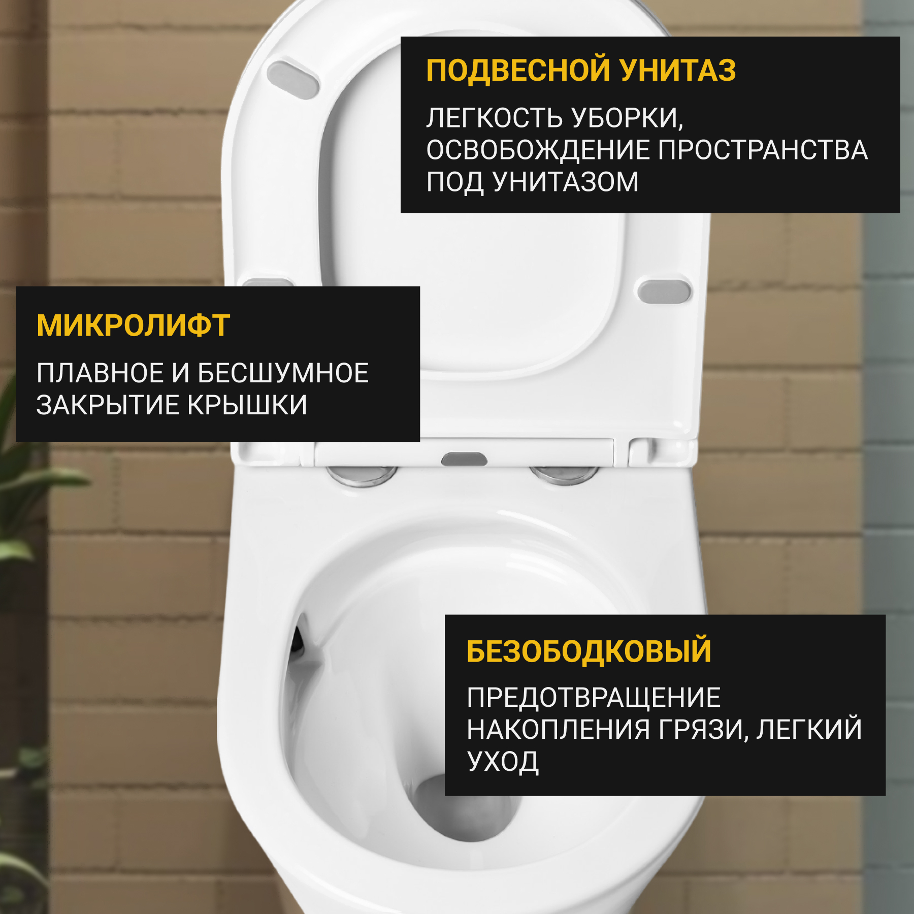 • Безободковый унитаз есть