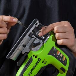 Лобзик аккумуляторный Greenworks GD24JS120 24В - легкий и компактный инструмент с маятниковым механизмом. Бесщеточный двигатель гарантирует долговечность работы устройства.