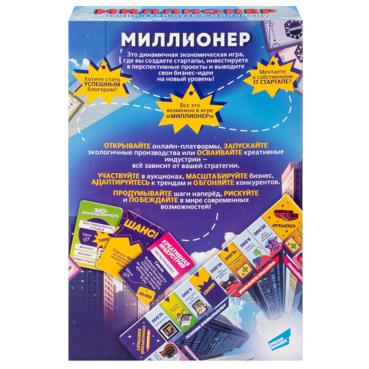 Хотите открыть кофейню? Мечтаете о собственном аквапарке? Все это возможно в новой игре "Миллионер", от белорусского бренда Dream Makers. Это классическая экономическая игра, в которой вы можете покупать и продавать предприятия, проводить аукционы и даже строить целые отрасли. Развивайте свой бизнес и становитесь богаче, продумывайте стратегию и конкурируйте с другими игроками.