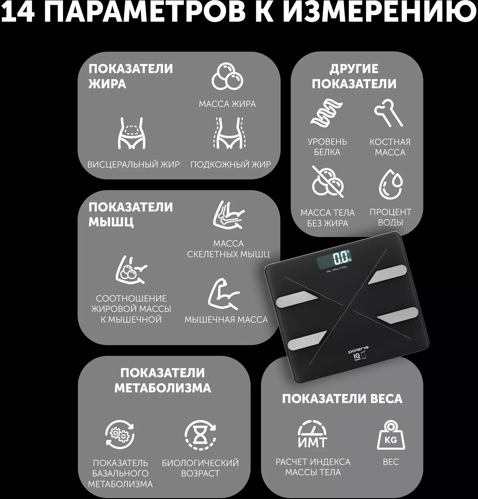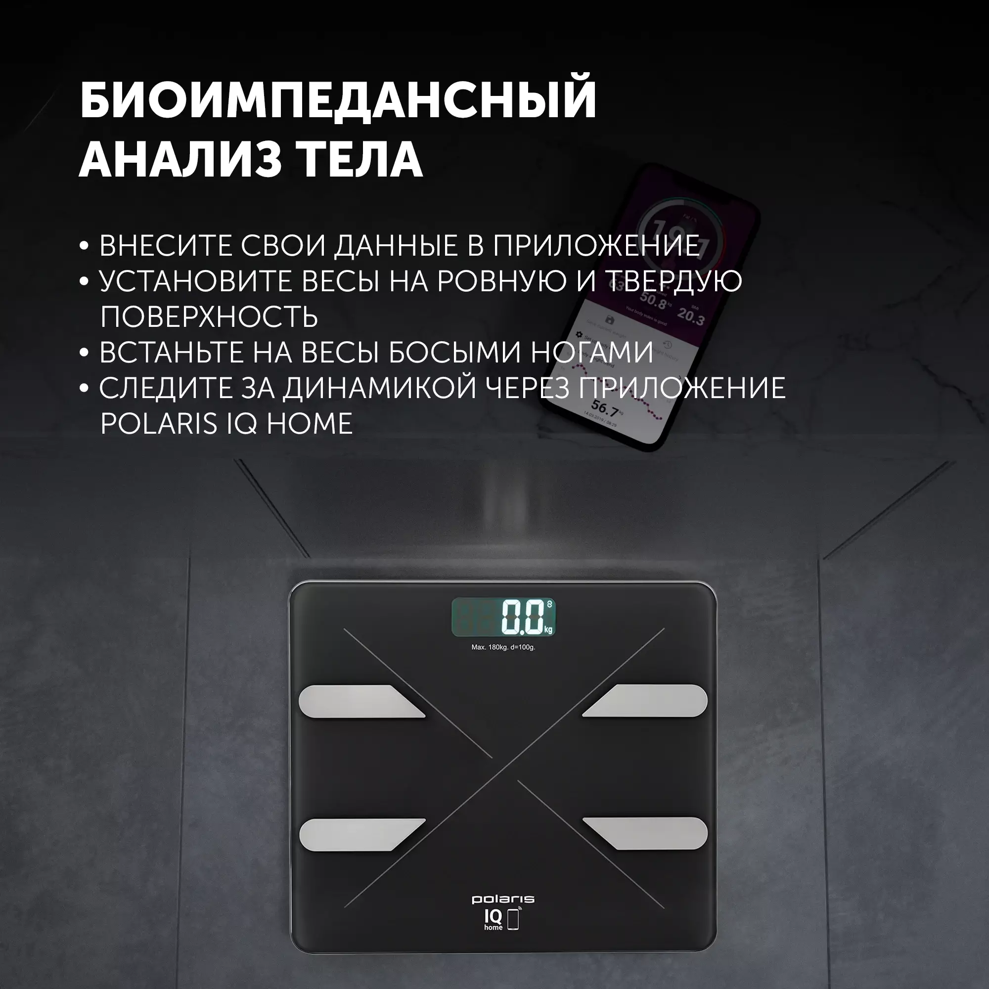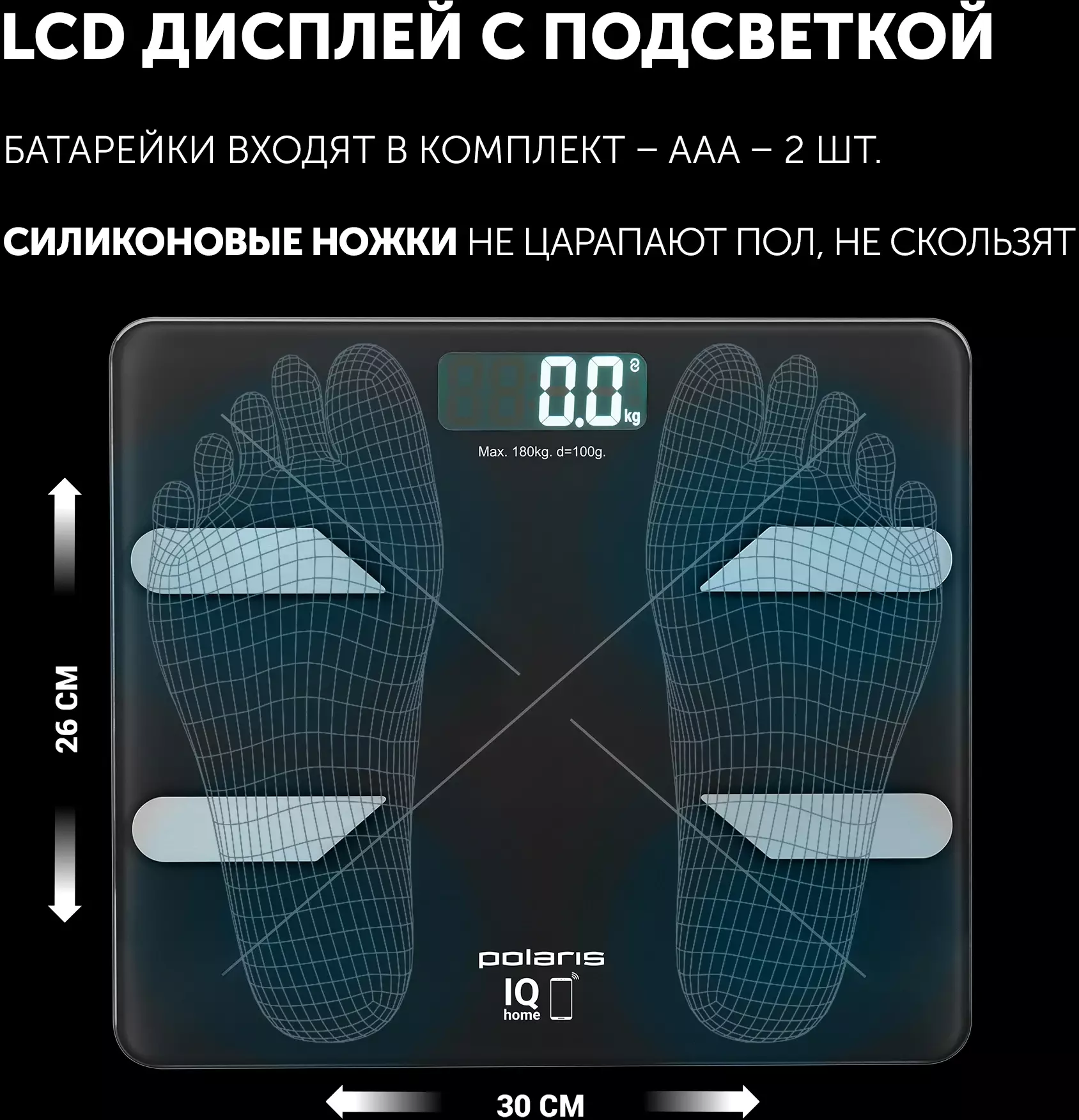 Весы напольные электронные Polaris PWS 1898 IQ Home черный (022693)