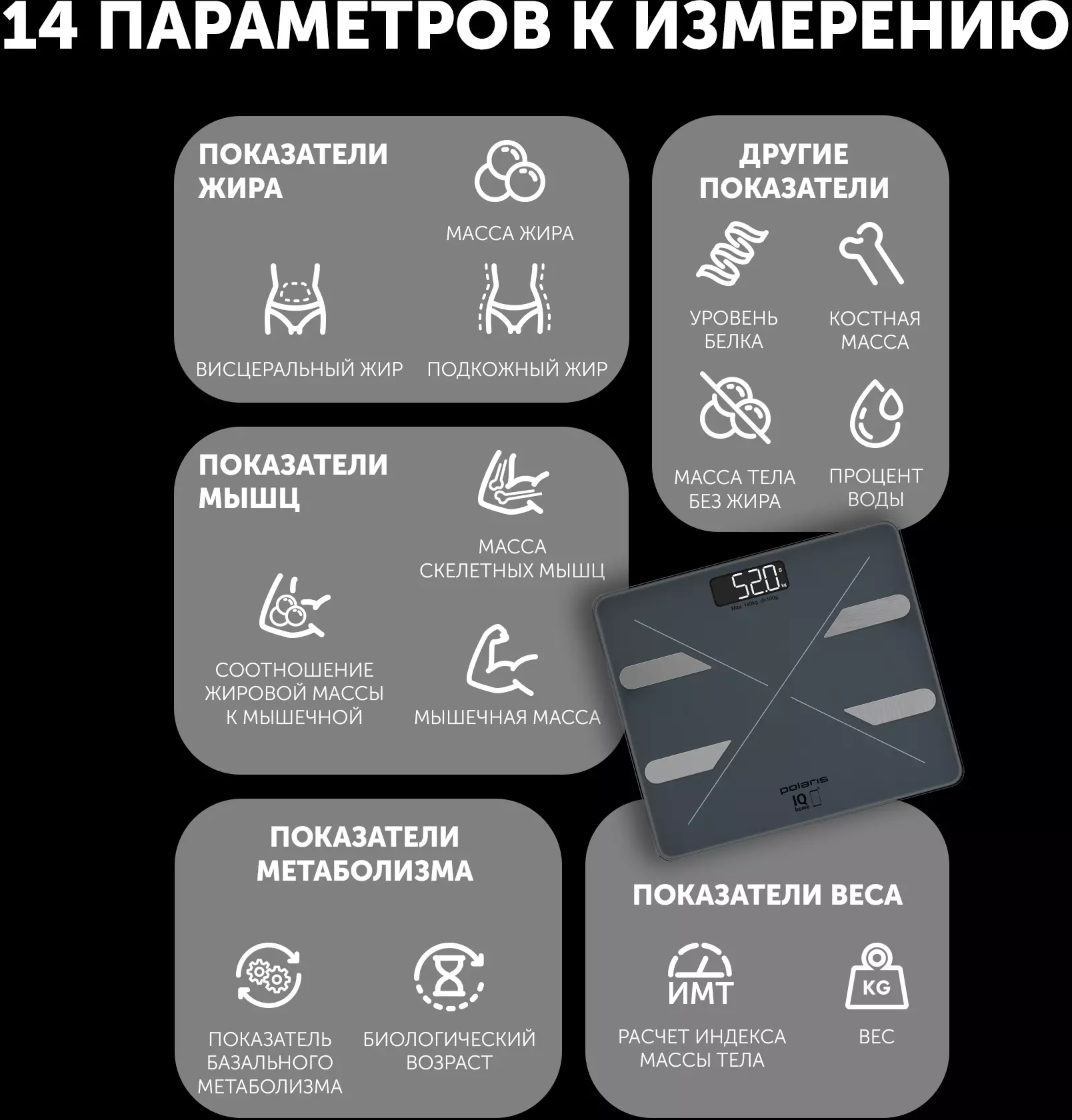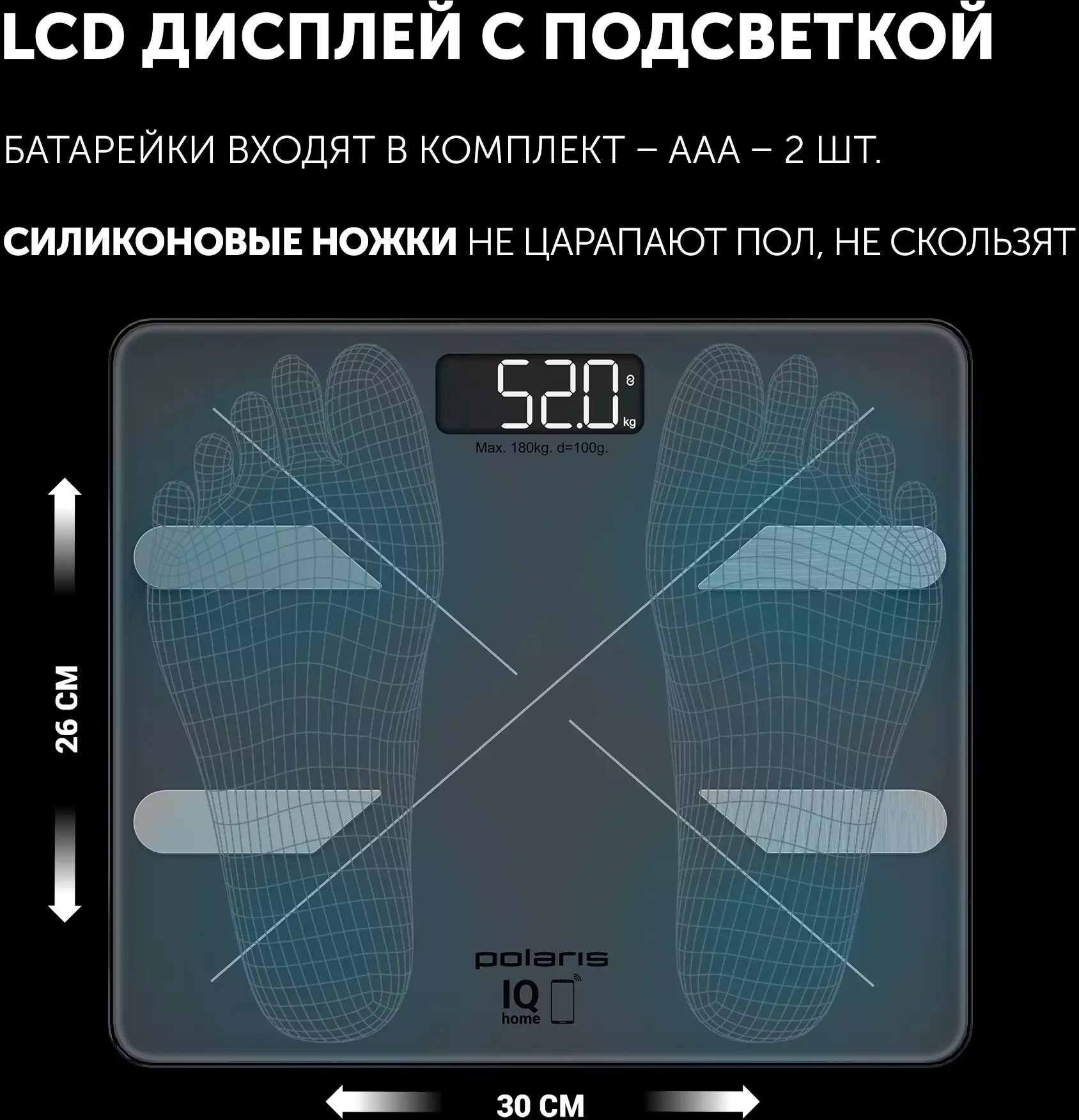 Весы напольные электронные Polaris PWS 1898 IQ Home графитовый (022693)