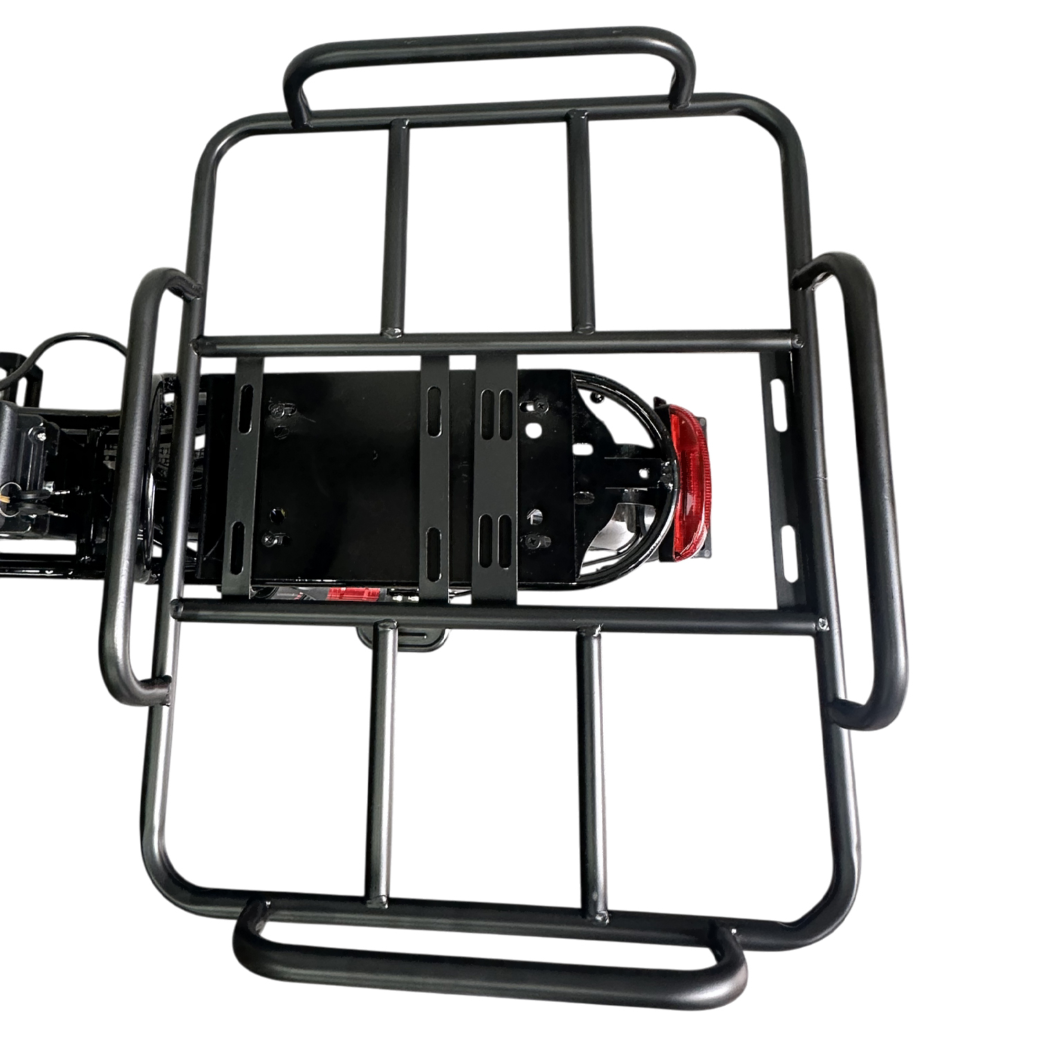 • Дополнительные элементы защита цепи (частичная), звуковой сигнал, корзинка, зеркало (2 шт.), подножка, фонарь, стоп-габарит