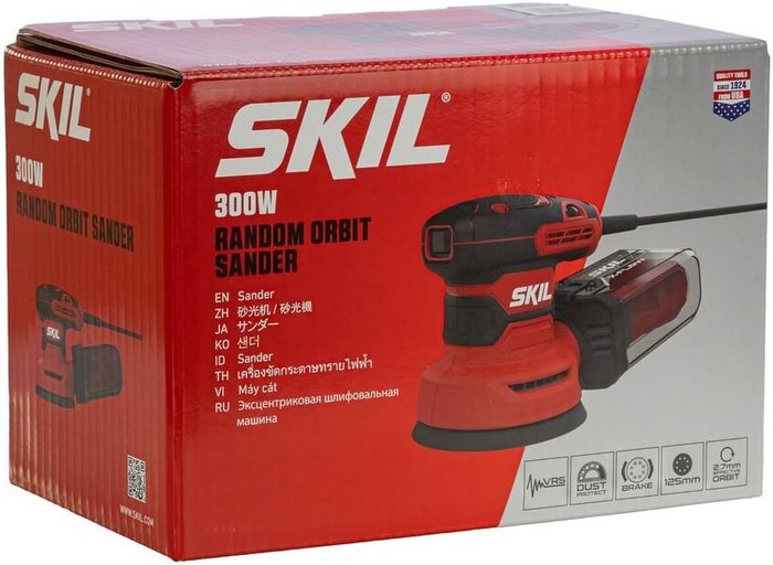 Компактная эксцентриковая шлифмашина с высокой эффективностью и системой X-FlowSKIL SR2116 — это универсальная эксцентриковая шлифовальная машина мощностью 300 Вт, идеально подходящая для обработки как плоских, так и изогнутых поверхностей. Благодаря эксцентриковому принципу движения инструмент обеспечивает как тонкую доводку, так и интенсивное снятие материала. Компактный и лёгкий корпус с прорезиненной рукояткой удобен для работы одной рукой, включая вертикальную обработку.Встроенная система балансировки (VRS) снижает уровень вибрации, повышая комфорт при длительной эксплуатации. Плавная регулировка скорости позволяет точно настроить режим работы под тип материала. Встроенная тормозная система подошвы предотвращает появление царапин при случайном контакте с заготовкой и обеспечивает быстрое торможение после выключения.Уникальная система пылеудаления X-Flow работает без фильтра и не забивается, обеспечивая стабильное и мощное всасывание пыли. Для подключения внешнего пылесоса предусмотрен адаптер, входящий в комплект. Быстрая замена шлифлистов осуществляется с помощью системы на липучке.Компактная эксцентриковая шлифмашина с высокой эффективностью и системой X-FlowSKIL SR2116 — это универсальная эксцентриковая шлифовальная машина мощностью 300 Вт, идеально подходящая для обработки как плоских, так и изогнутых поверхностей. Благодаря эксцентриковому принципу движения инструмент обеспечивает как тонкую доводку, так и интенсивное снятие материала. Компактный и лёгкий корпус с прорезиненной рукояткой удобен для работы одной рукой, включая вертикальную обработку.Встроенная система балансировки (VRS) снижает уровень вибрации, повышая комфорт при длительной эксплуатации. Плавная регулировка скорости позволяет точно настроить режим работы под тип материала. Встроенная тормозная система подошвы предотвращает появление царапин при случайном контакте с заготовкой и обеспечивает быстрое торможение после выключения.Уникальная система пылеудаления X-Flow работает без фильтра и не забивается, обеспечивая стабильное и мощное всасывание пыли. Для подключения внешнего пылесоса предусмотрен адаптер, входящий в комплект. Быстрая замена шлифлистов осуществляется с помощью системы на липучке.